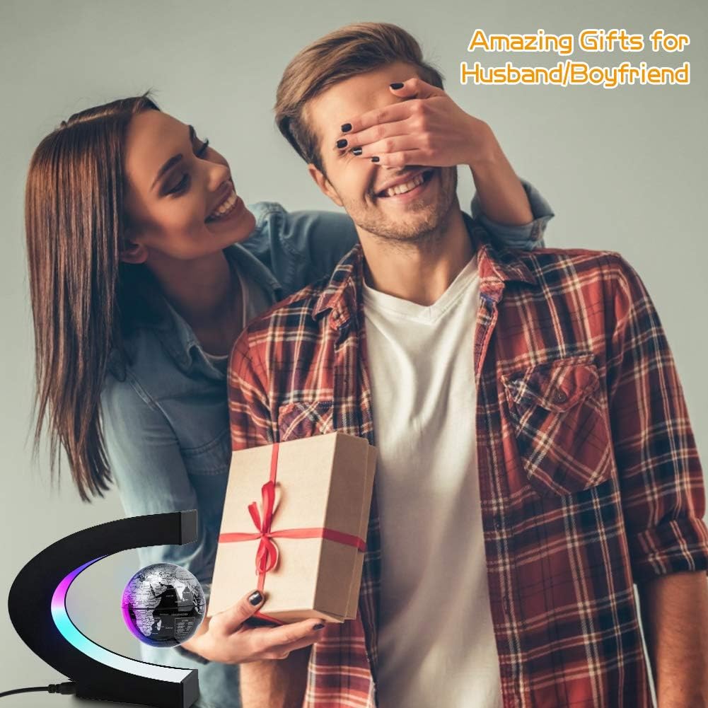 Experience the wonder of science with this captivating magnetic levitation globe that defies gravity right on your desk! This stunning floating globe features a detailed world map with clear country names, oceans, and continents, creating an interactive educational experience for geography enthusiasts of all ages. The sleek C-shaped frame houses three vibrant LED beads that cycle through mesmerizing purple, pink, and cyan colors, making it a striking decorative piece for any office, home, or classroom. Thanks to advanced magnetic levitation technology, the globe spins effortlessly in midair with virtually zero friction – give it a gentle spin by hand and watch it rotate continuously for 15-25 minutes! Perfect as a birthday gift for boys and girls, a unique father’s day present, a cool office desk accessory, or an engaging STEM learning tool that inspires curiosity about our world. The included power adapter and easy-to-follow instructions make setup a breeze. Whether you’re a geography lover, science enthusiast, or simply appreciate unique desk decor, this floating globe is sure to become a conversation starter and a beloved possession.