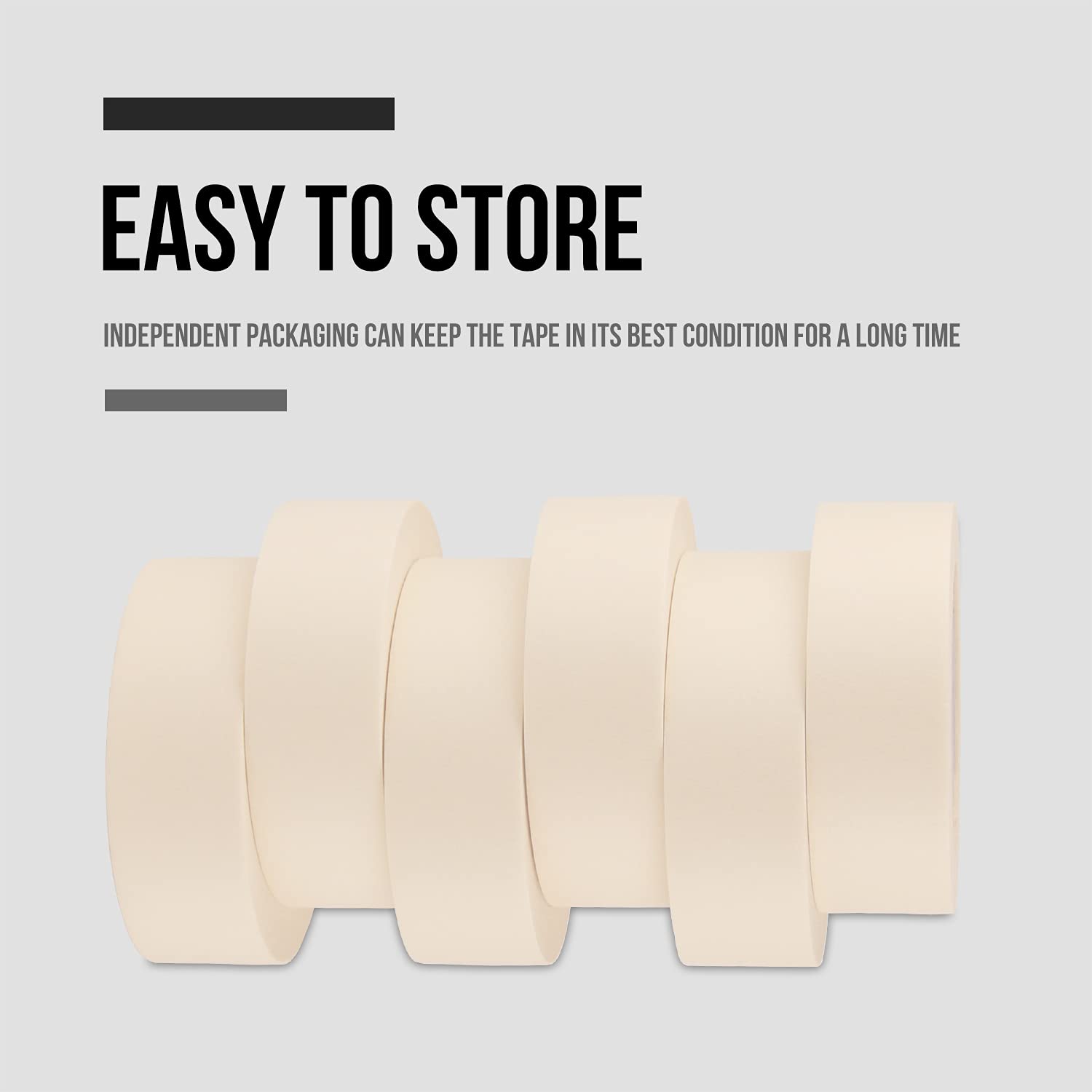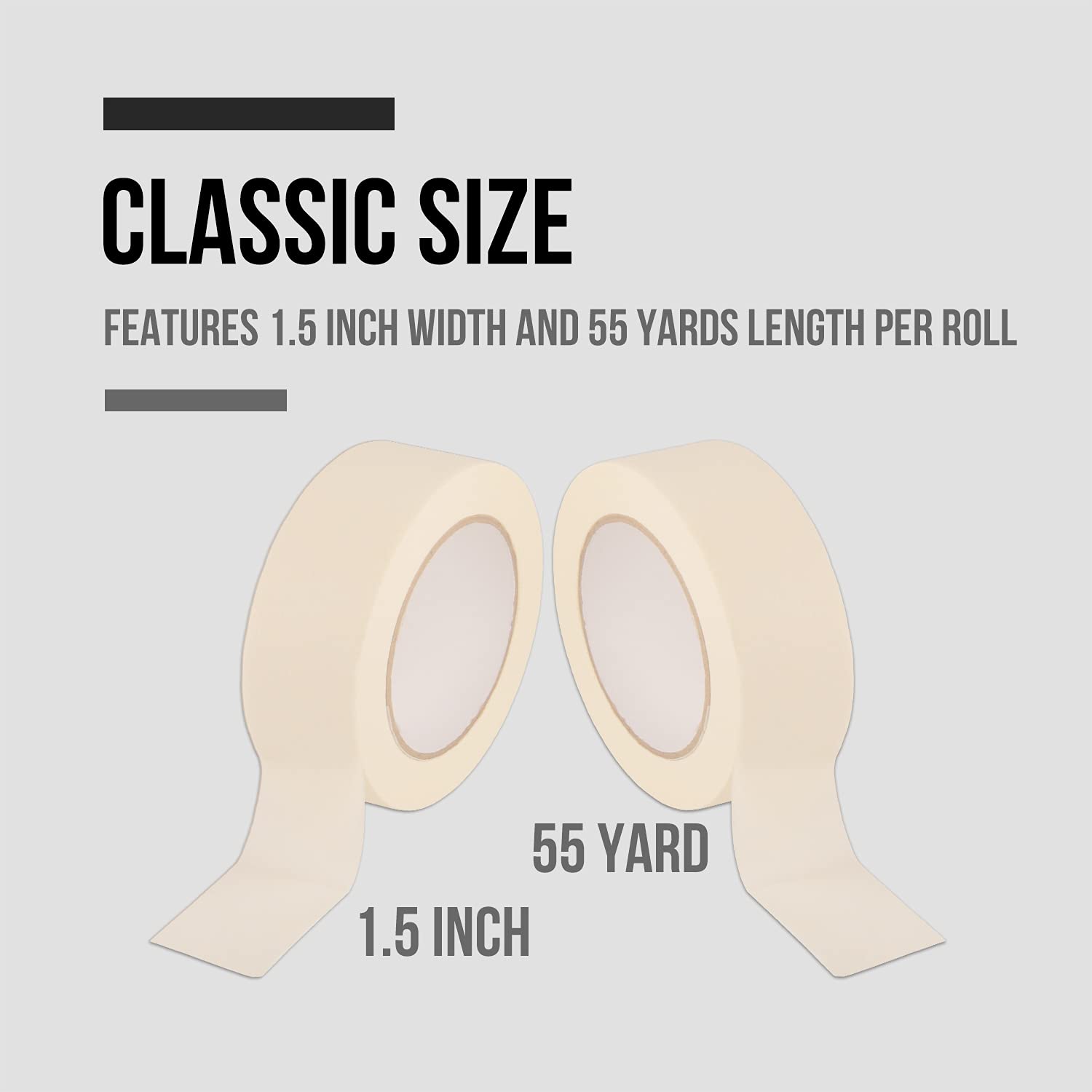 6 rolls of 1.5-inch wide masking tape (330 total yards); Strong instant adhesion to multiple surfaces; Easy hand-tear with no slivering; Resists lifting and curling; Crepe paper backing for conformability; Removes cleanly without residue; Heat resistant up to 200°F; Ideal for indoor painting and crafts