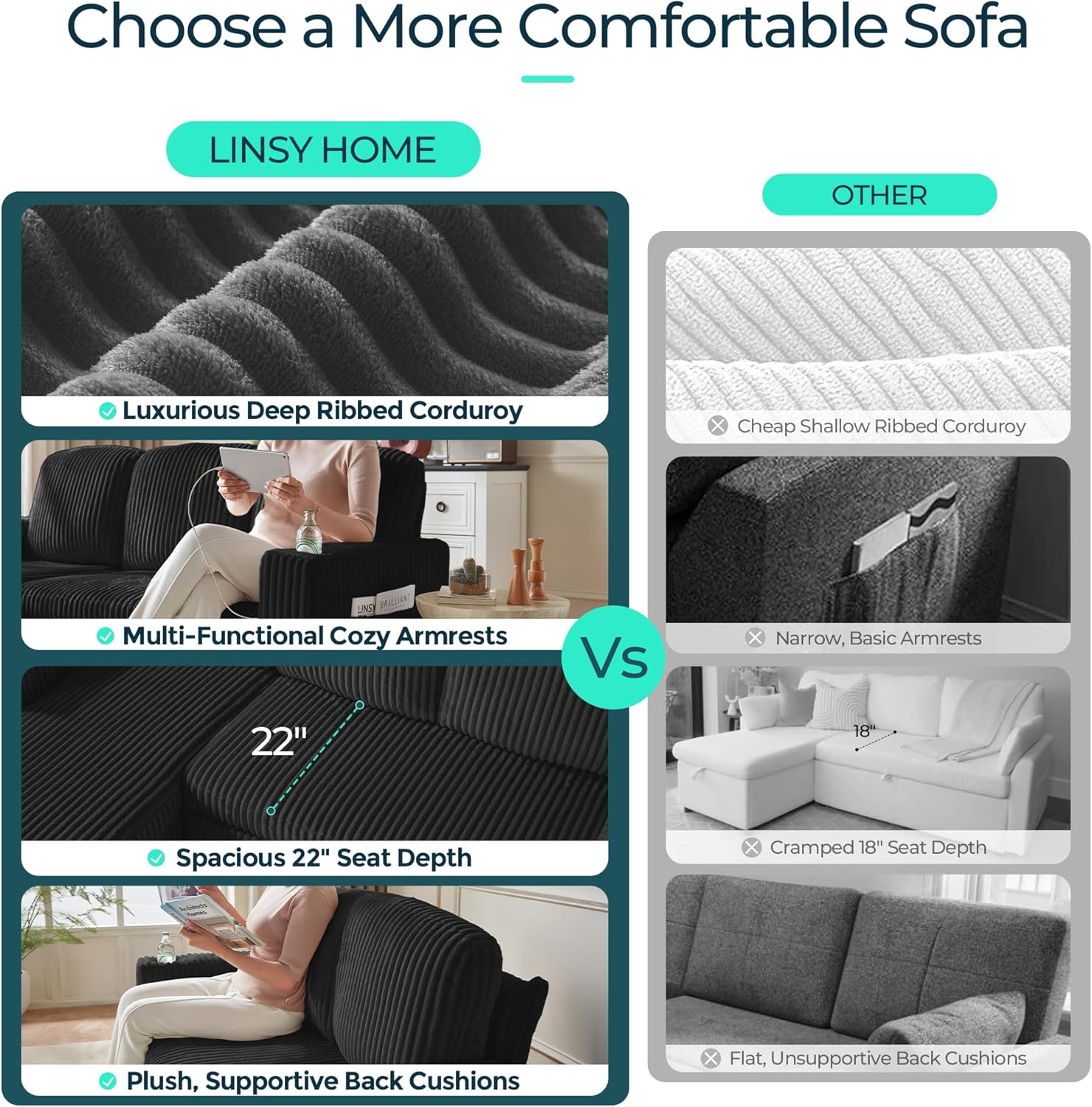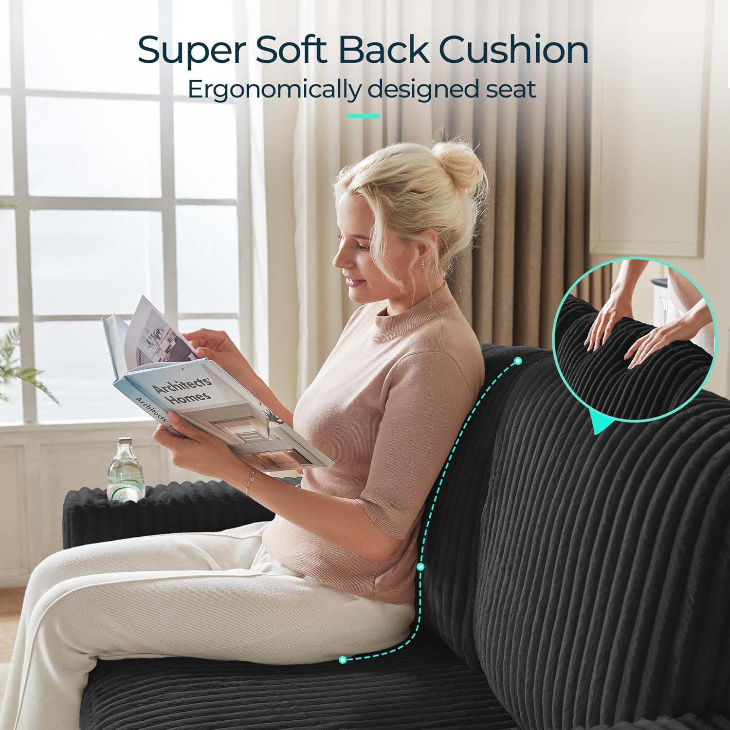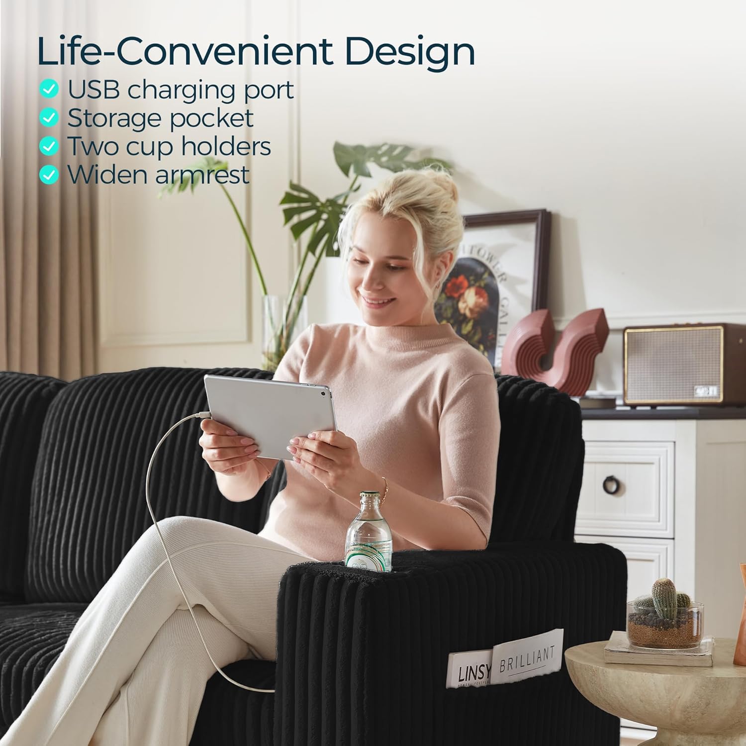 • Luxurious Plush Corduroy: Upholstered in high-quality, soft-to-the-touch corduroy fabric that adds rich texture and warmth to any room. The material is breathable, durable, and pet-friendly, maintaining a neat appearance over time.