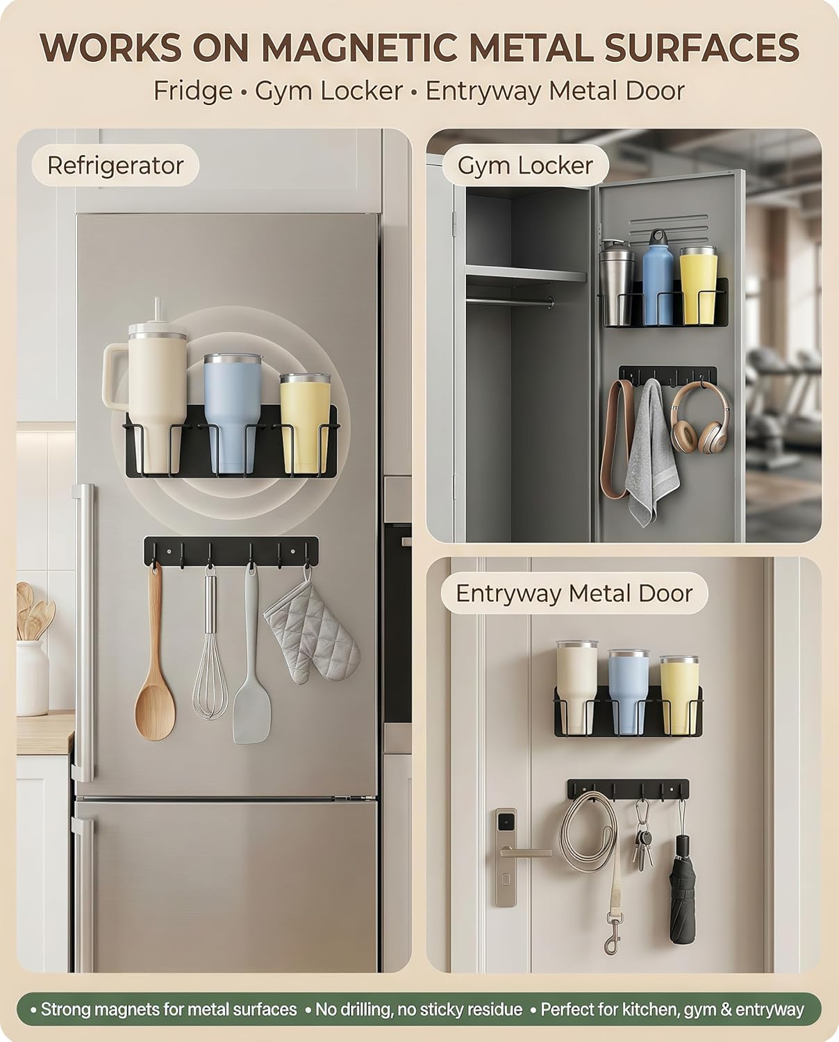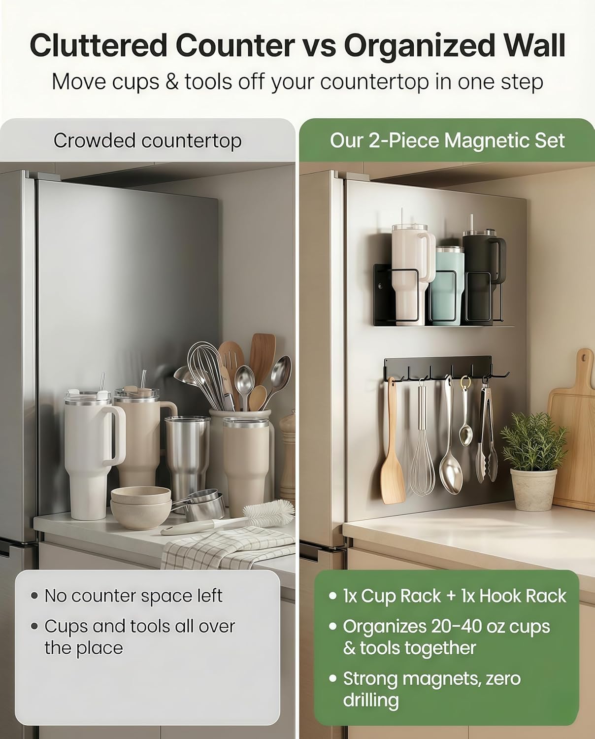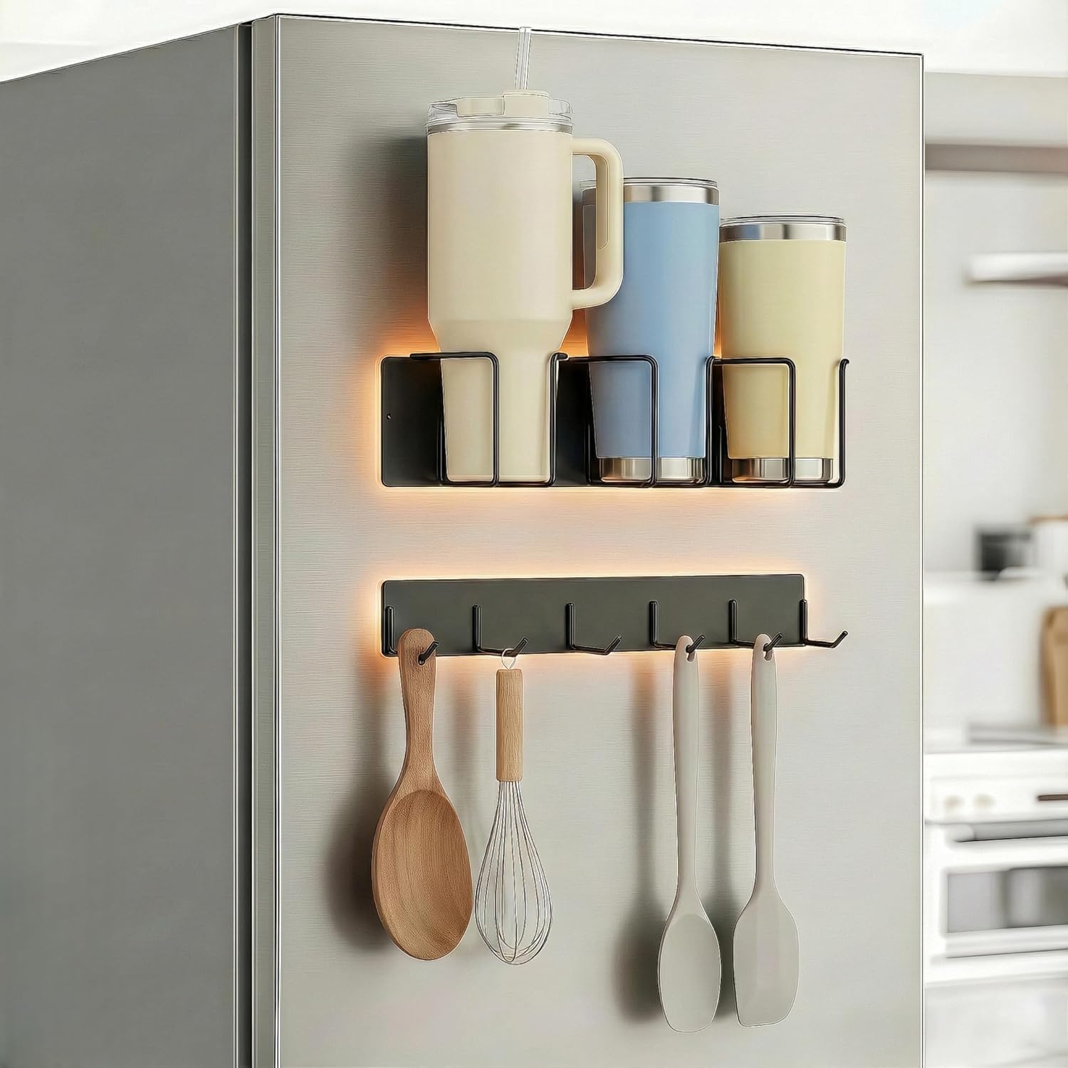 Stop sacrificing counter space and keep your essentials within arm’s reach. This premium 2-pack magnetic organizer set is engineered to hold your favorite oversized tumblers securely while providing a versatile hook rail for keys, tools, or kitchen accessories. Whether you are organizing a chaotic kitchen or a busy garage workshop, this heavy-duty magnetic rack is the storage solution you didn’t know you needed.