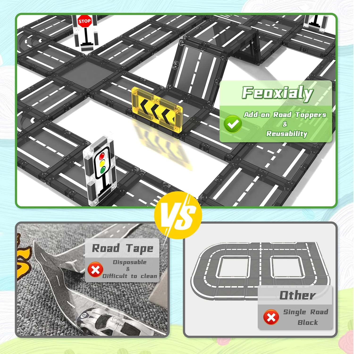 Forget about mismatched pieces. This road set is engineered to be fully compatible with all major magnetic tile brands on the market. Whether you have a small starter set or a massive collection, these road elements integrate perfectly, allowing you to maximize the value of the toys you already own. It is the most cost-effective way to add new life and complexity to your child’s building adventures.