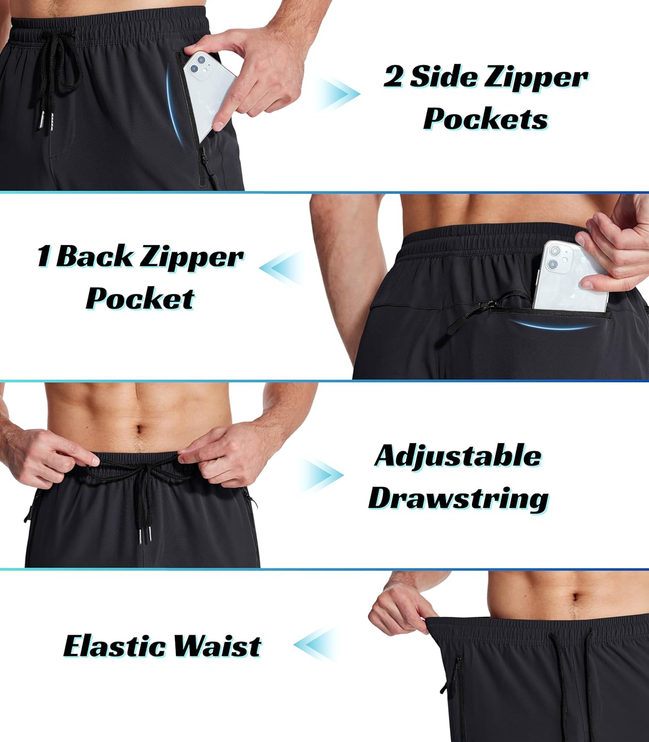 - Adjustable Fit: Featuring an elasticated waistband with an internal drawstring, you can customize the fit to your preference, ensuring the pants stay in place whether you’re lifting, sprinting, or stretching.