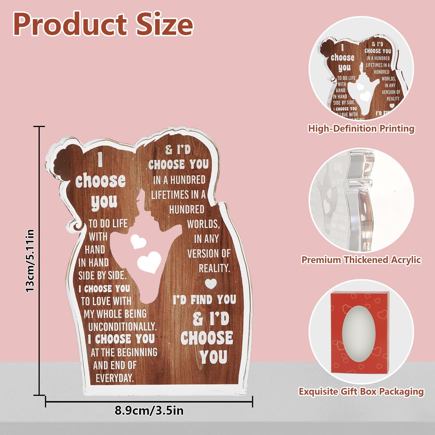 Express your deepest affection with the MAMAGIFTREE Acrylic Plaque, a beautifully crafted desktop decoration designed to celebrate the bond you share. Perfect for Valentine’s Day, anniversaries, weddings, or birthdays, this plaque features a touching ‘I Choose You’ message that serves as a daily reminder of commitment and love. Whether you are searching for a romantic gesture for a boyfriend, girlfriend, husband, or wife, this piece makes a memorable and heartfelt gift for couples.
