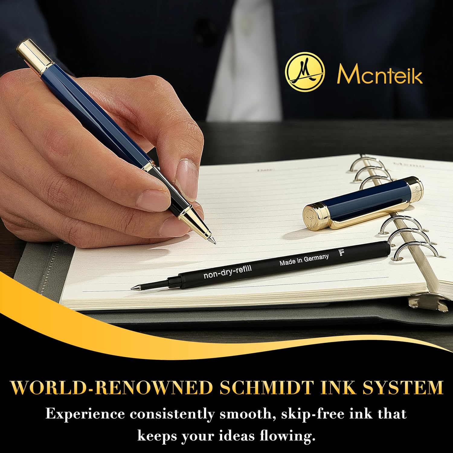MCNTEIK Luxury Rollerball Pen – 24K Gold Plated Executive Fountain Pen with Schmidt Refill & Gift Box – Premium Writing Instrument for Men & Women