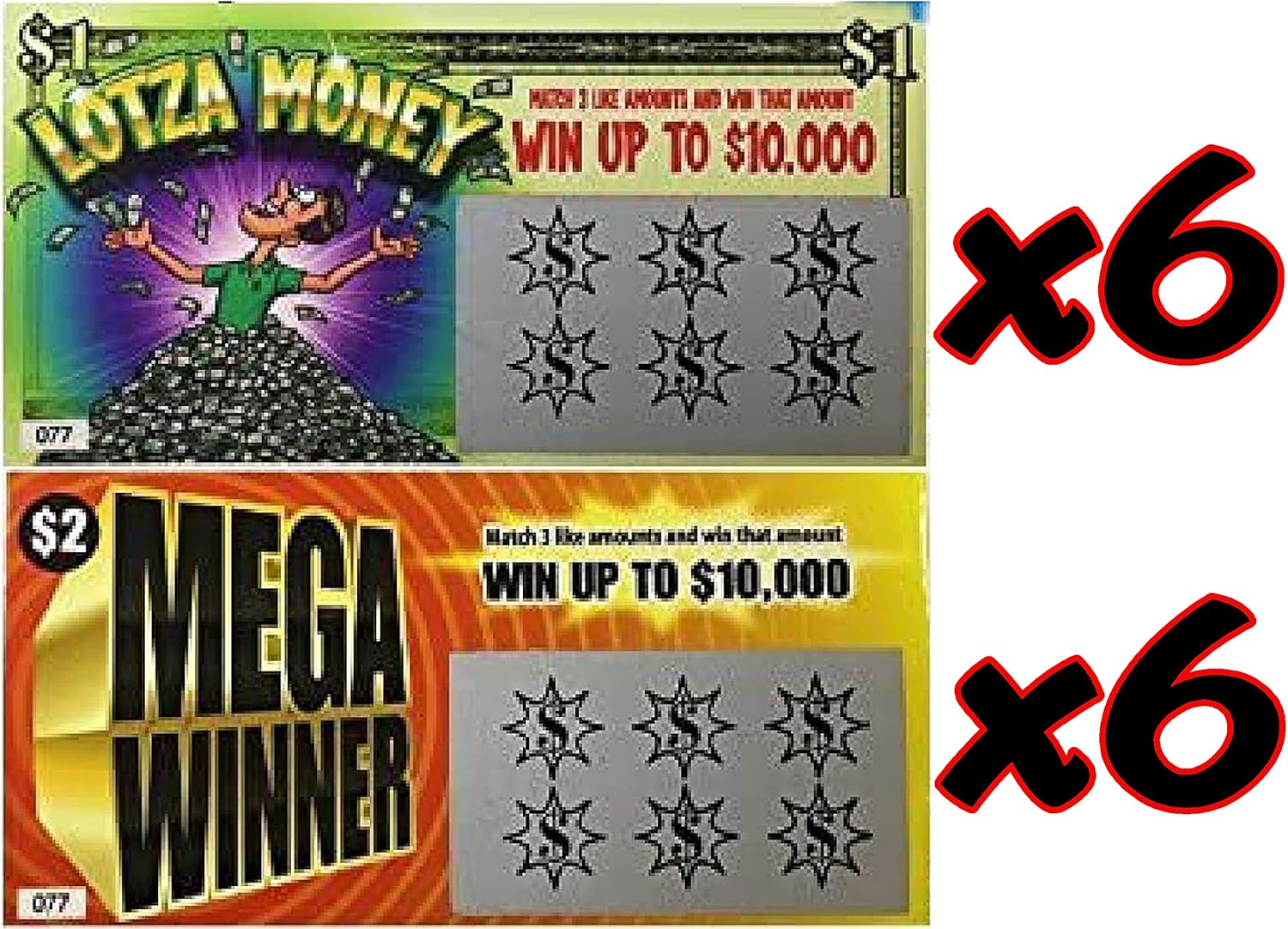Mega Winner & Lotza Money Fake Lottery Tickets – 12 Pack Prank Scratch-Offs for Party Gags & April Fools Jokes