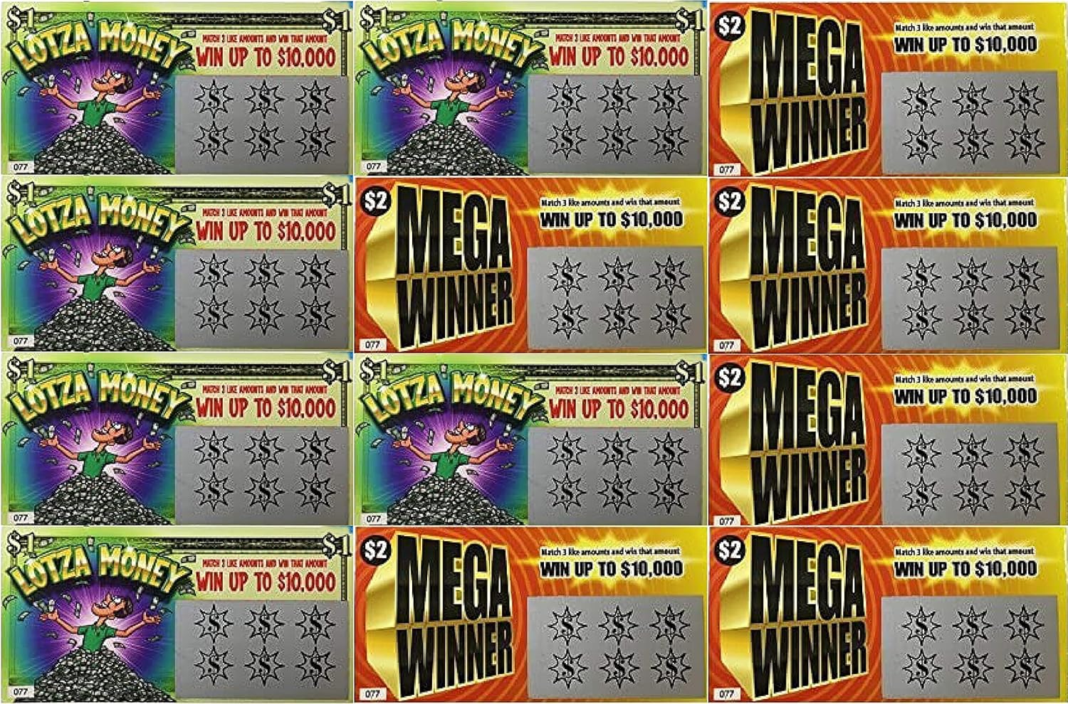 Assorted Winners: Includes ‘Mega Winner’ and ‘Lotza Money’ styles for variety.