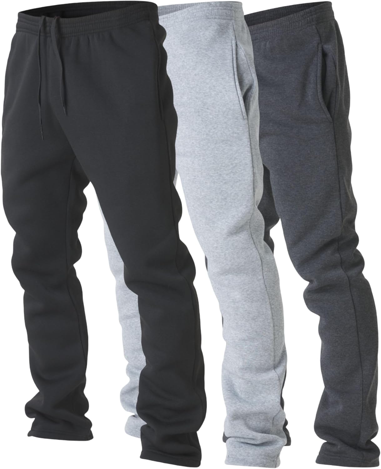 Men’s 3-Pack Wide Leg Fleece Sweatpants with Pockets – Open Bottom Lounge, Workout & Athletic Pants