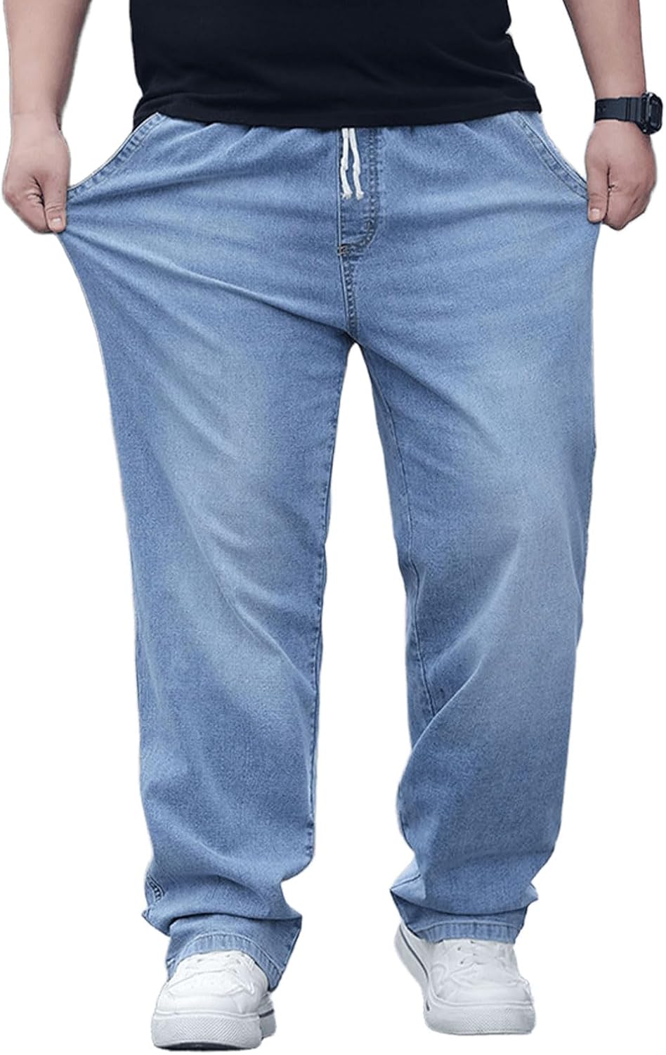 Redefine your casual wardrobe with our Men’s Plus Size Baggy Jeans, expertly designed for ultimate comfort without compromising on style. These innovative pants bridge the gap between classic denim durability and the relaxed feel of your favorite sweatpants. Featuring a functional elastic waistband with an adjustable drawstring, they offer a custom, secure fit that accommodates waistlines from L to 5XL without the restrictive pressure of traditional button-fly jeans. The straight-leg cut provides a trendy, loose silhouette that allows for maximum breathability and ease of movement, making them perfect for all-day wear. Whether you are lounging at home, running errands, or heading out for a casual meetup, these pull-on denim pants are the versatile essential you’ve been searching for.
