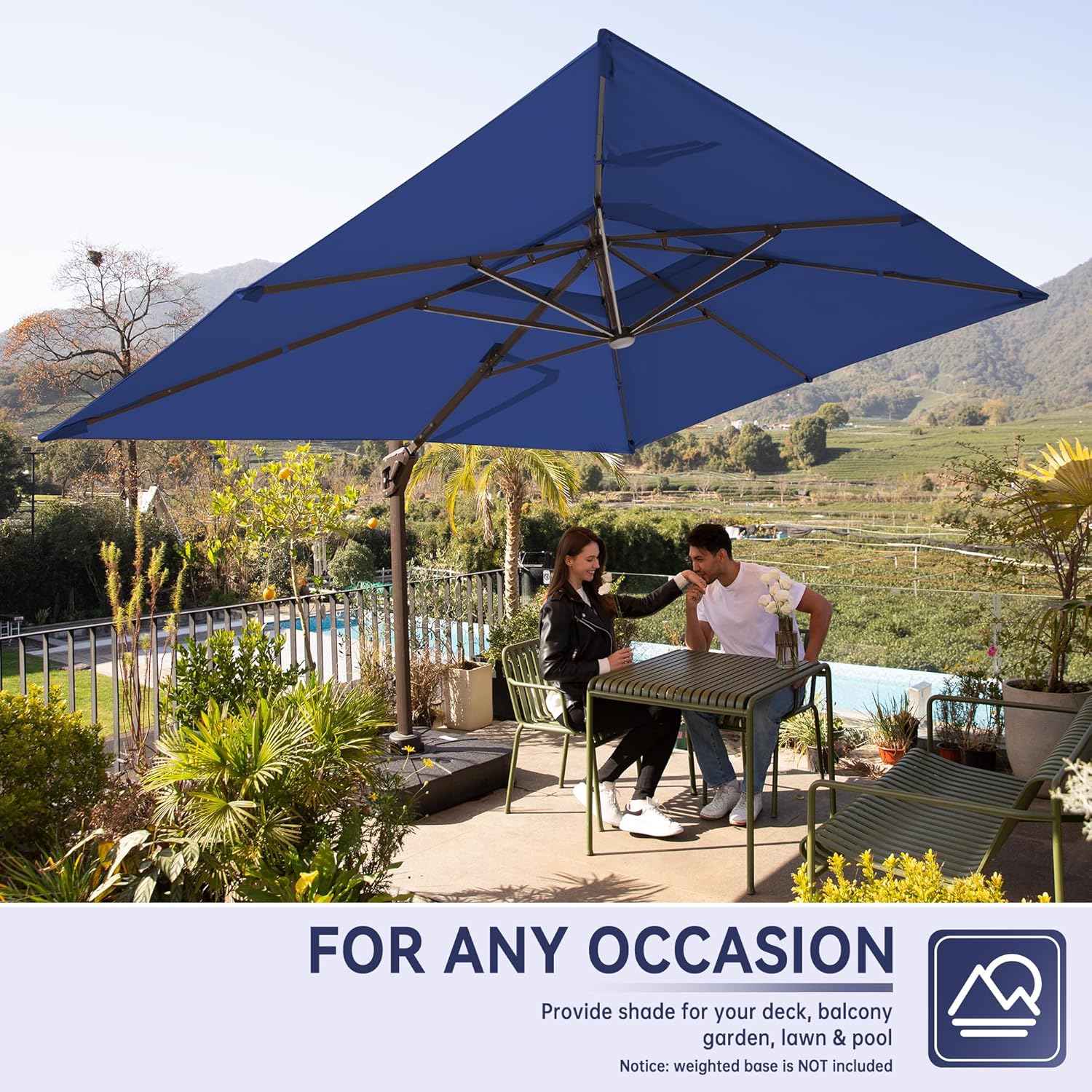 Elevate your patio, garden, or poolside experience with the MEVBC 10′ x 13′ Rectangular Cantilever Umbrella. Engineered for versatility and durability, this large offset umbrella provides expansive coverage for your outdoor gatherings, day or night.