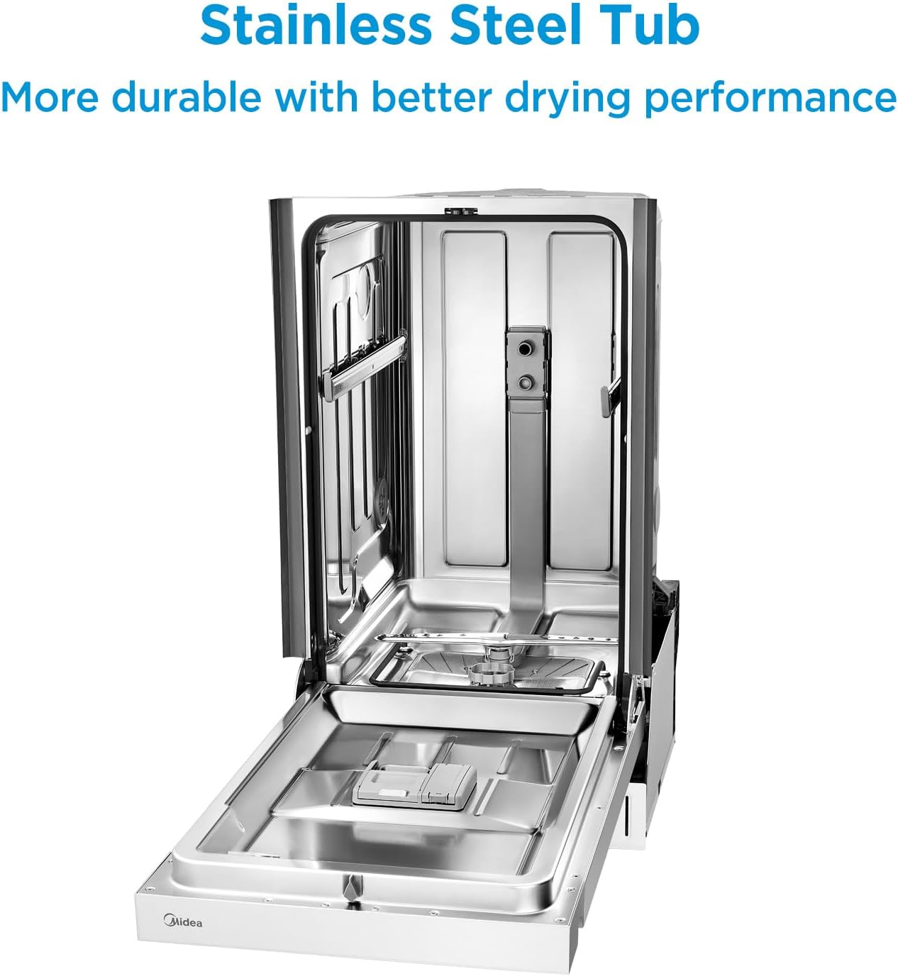 Transform your kitchen with the Midea slimline built-in dishwasher, designed specifically for compact spaces without compromising on cleaning power. This sleek white dishwasher features a generous 8-place setting capacity, allowing you to clean full loads while taking up minimal counter space—perfect for apartments, condos, and small kitchens. Choose from 6 versatile washing programs and 3 convenient functions to customize every wash for optimal results. The advanced heated dry technology ensures your dishes emerge completely dry and ready to store, eliminating water spots and the need for hand drying. The HI TEMP wash function uses high-temperature water to penetrate tough food residues and sanitize your dishes, providing peace of mind for your family’s health. This dishwasher is Energy Star 7.0 certified, delivering exceptional cleaning performance while consuming less energy and reducing your utility bills. The durable stainless steel tub resists odors, stains, and corrosion while maintaining optimal water temperature throughout the wash cycle. Upgrade your kitchen today with this reliable, space-saving dishwasher that combines modern design with powerful cleaning performance.
