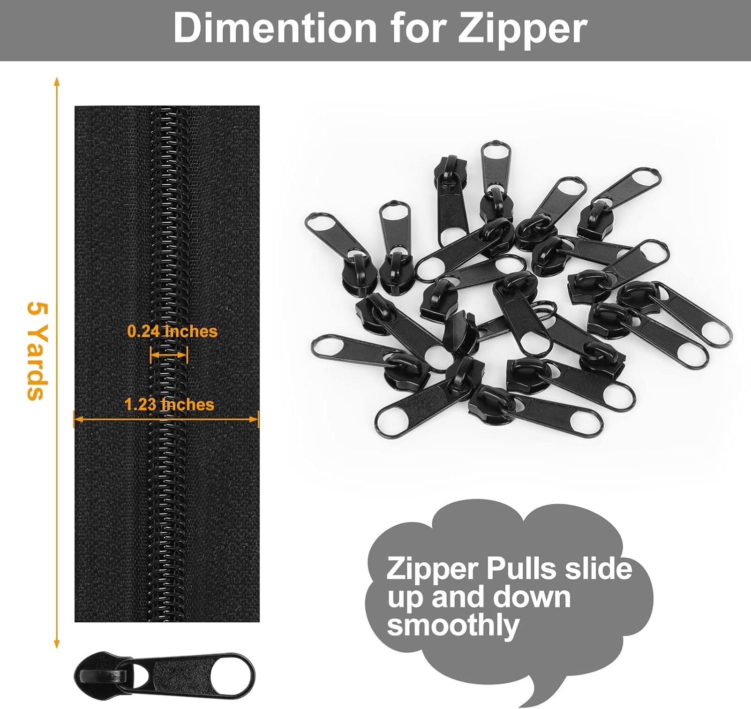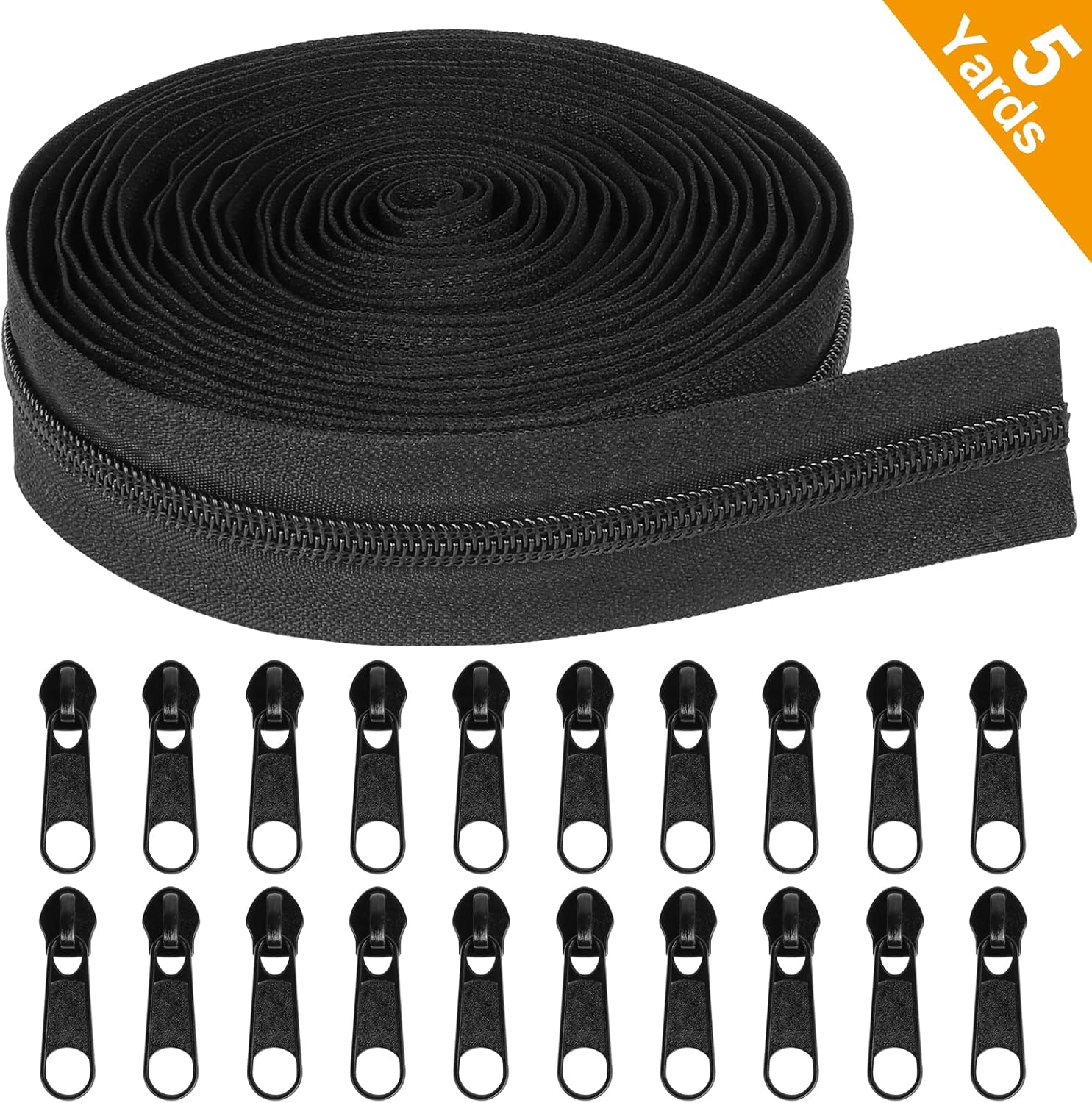 - Package Contents: 1 Roll of 5-Yard Zipper Tape + 20 PCS #5 Black Sliders