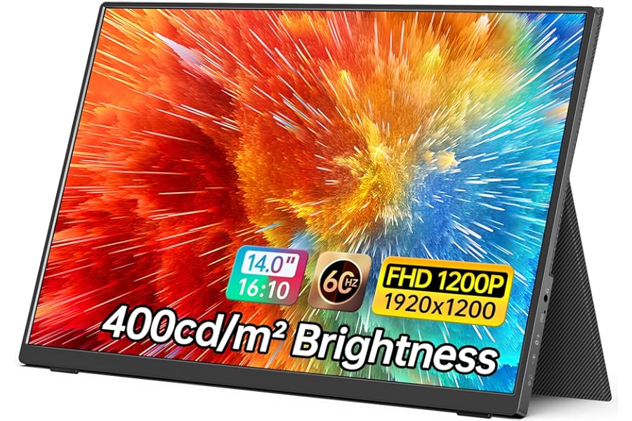 MNN Portable Monitor 14 inch FHD 1920 * 1200P USB C HDMI Ultra-Slim IPS Travel Display w/Speakers, HDR Plug&Play, External Mo