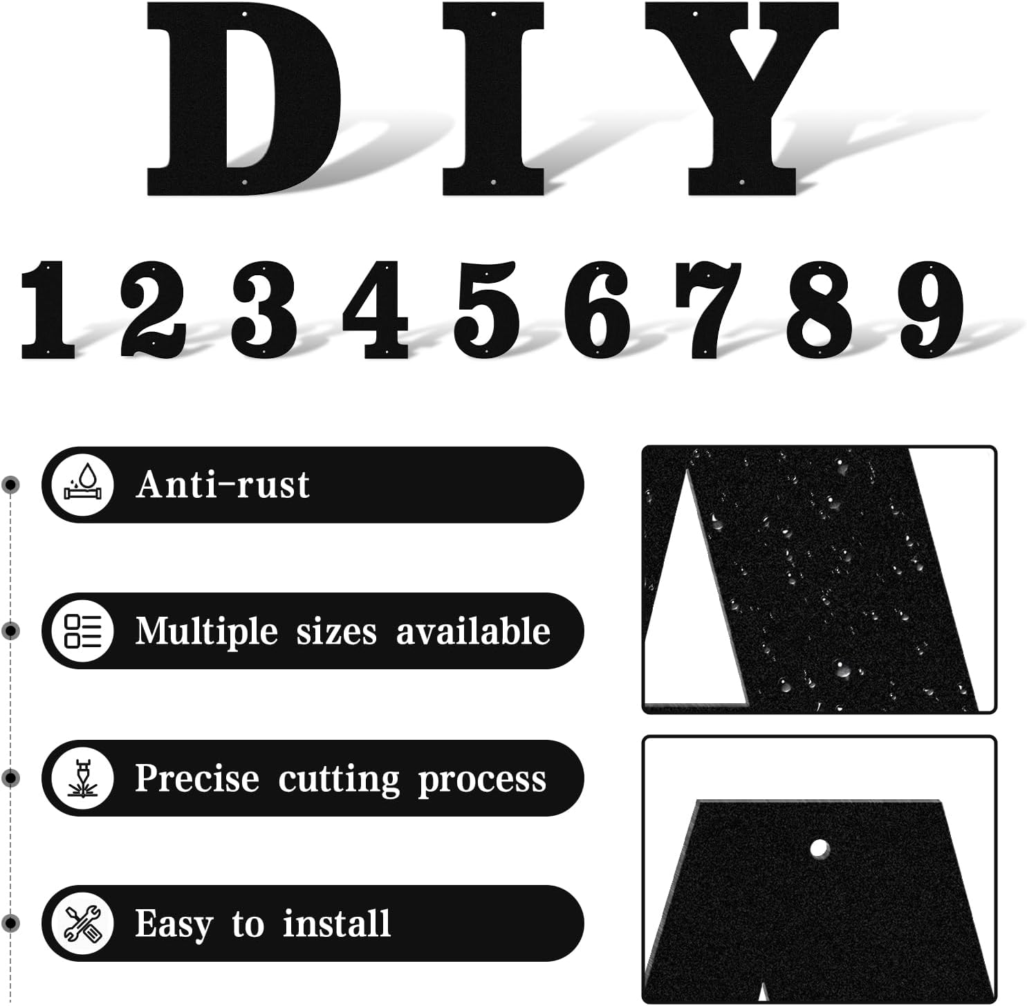 We offer a full set of metal characters (0-9 and A-Z), allowing you to create custom house numbers, apartment unit labels, or business signs with ease. Each plaque comes with pre-drilled holes and included stainless steel mounting hardware, making the installation process seamless and secure.
