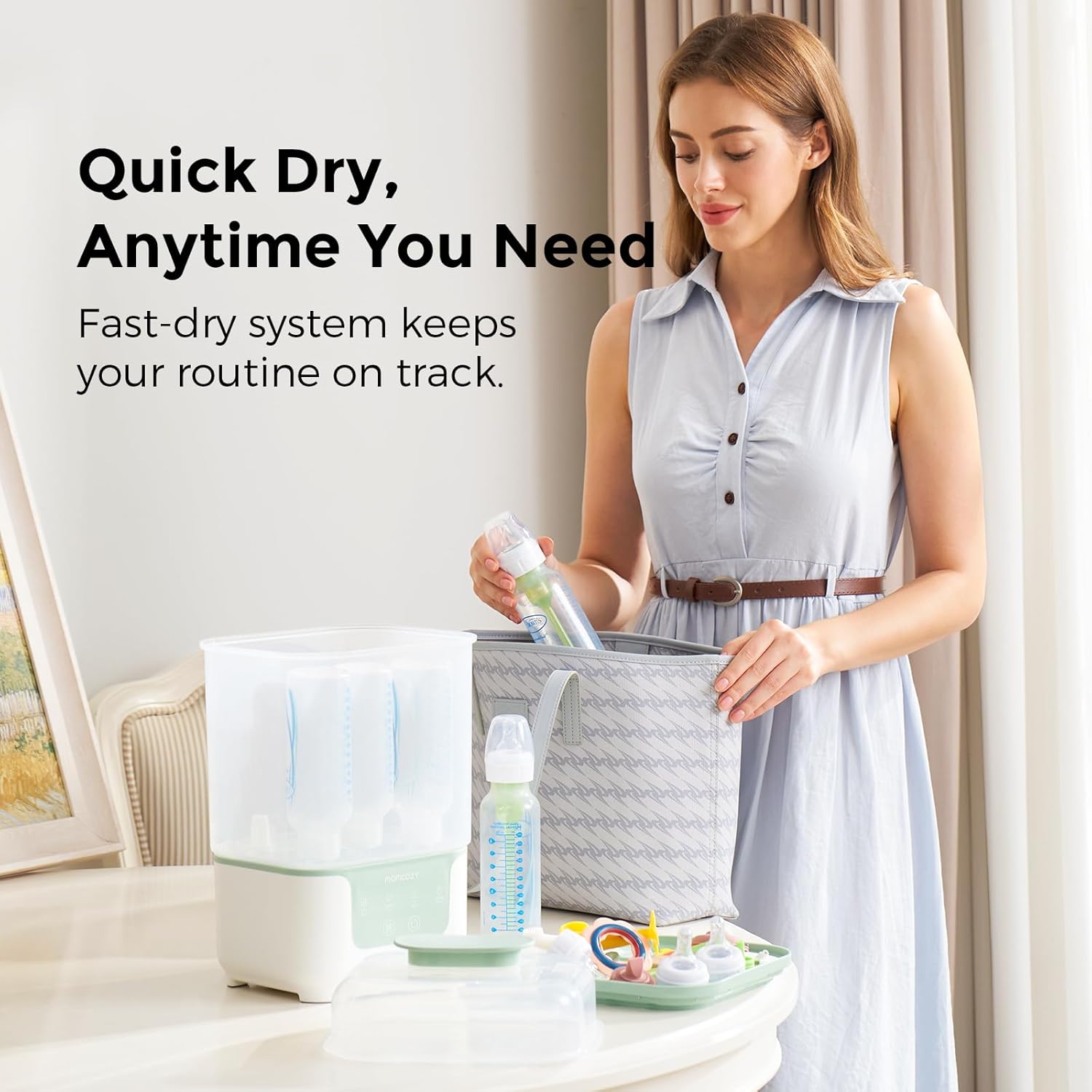 - Fully Automatic 4-in-1 System: Seamlessly switch between Sterilizer, Dryer, Storage, and Auto modes. The intuitive interface makes it easy for sleep-deprived parents to operate, ensuring peace of mind during late-night feeds.