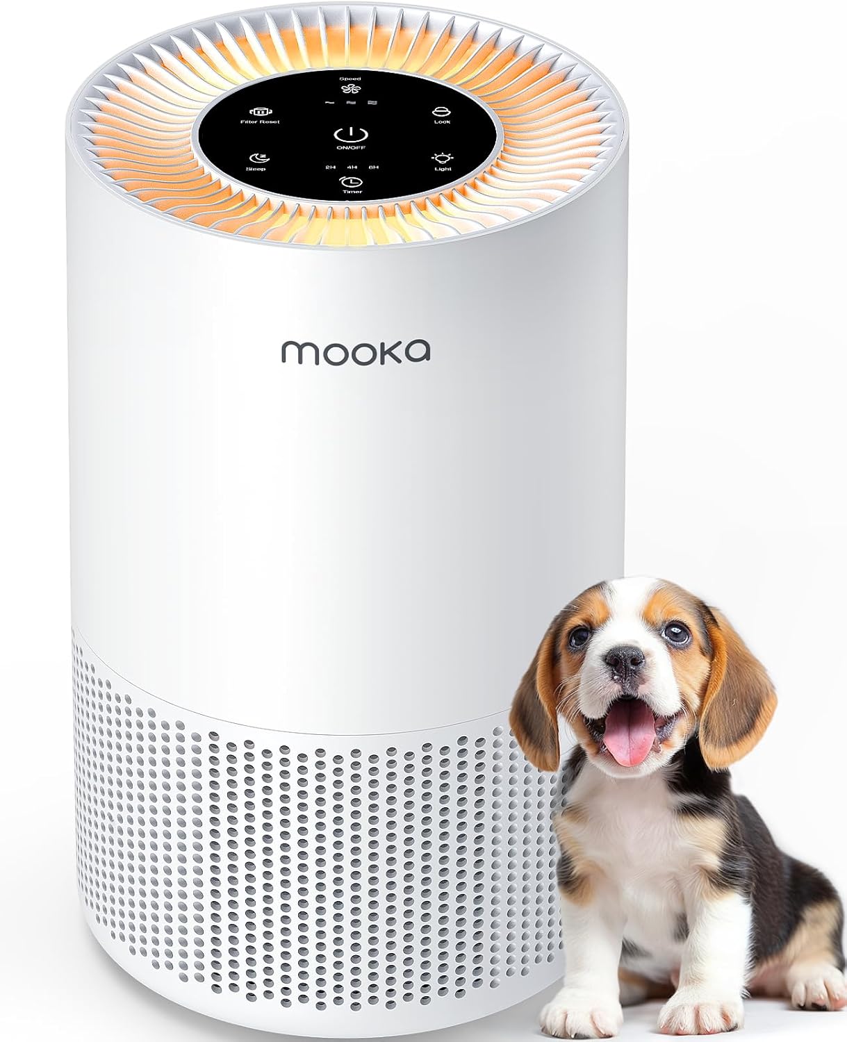 Breathe fresh, clean air in every corner of your home with the MOOKA H13 True HEPA Air Purifier. Engineered for large spaces up to 1200ft², this powerful yet whisper-quiet air purifier refreshes a 300ft² room in just 10 minutes, making it perfect for living rooms, bedrooms, nurseries, offices, and basements. The advanced H13 HEPA filter effectively traps dust, pollen, pet dander, smoke, and stubborn odors, creating a healthier environment for families, pet owners, babies, and anyone sensitive to air quality. What sets this air purifier apart is the built-in aromatherapy feature—simply add 4-5 drops of your favorite essential oil to the fragrance sponge and let the gentle flow of fresh, scented air help you relax and fall asleep peacefully. Choose from 4 fan speeds, set the convenient timer (2H/4H/8H), and enjoy the optional soft night light for a calming atmosphere. The ultra-quiet 13dB operation ensures it won’t disturb your sleep, work, or study, while the energy-efficient brushless motor keeps electricity costs low. Safety features include a child lock to prevent accidental adjustments and CARB/CE/FCC/RoHS/GS/ETL certifications guaranteeing ozone-free operation. The filter replacement indicator reminds you when it’s time to change the filter (typically every 3-6 months). Transform your indoor air quality today with MOOKA’s premium air purification technology.