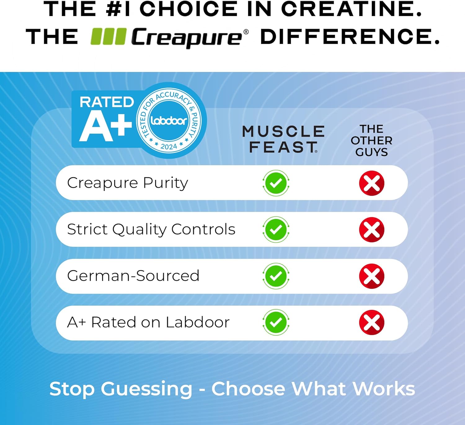 We believe in fueling bodies without compromising dietary restrictions. Muscle Feast Creapure is 100% Vegan, Keto-Friendly, and Gluten-Free. The unflavored powder mixes instantly and seamlessly into water, juice, or your favorite protein shake, making it the perfect addition to your pre or post-workout routine.