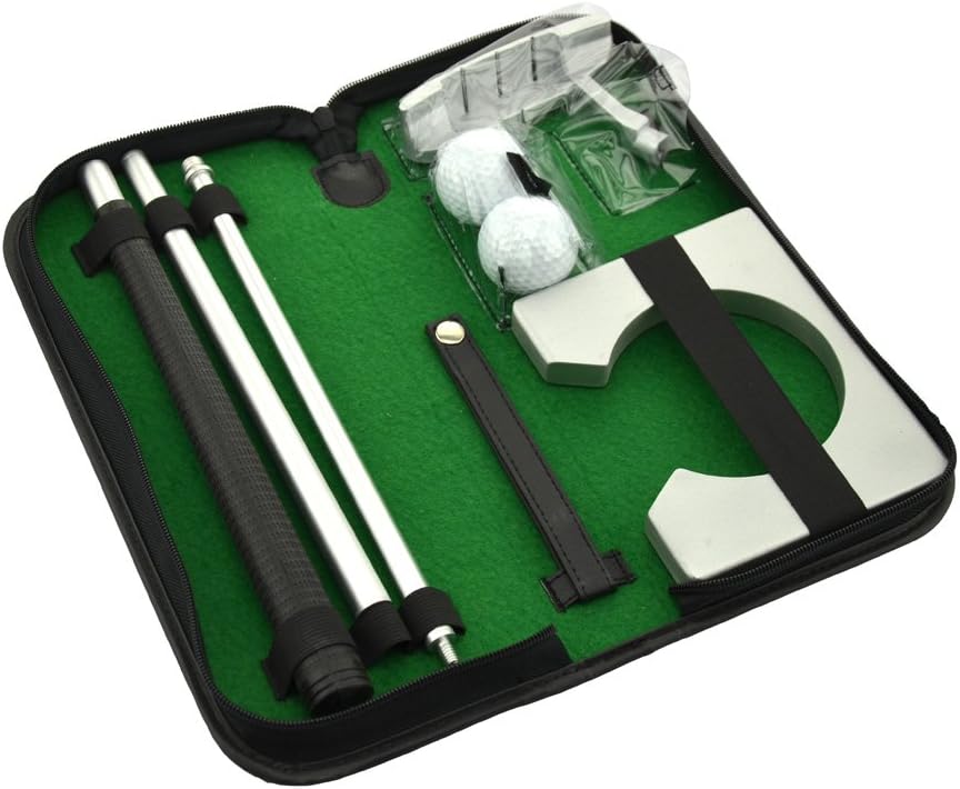 Transform downtime into practice time with the Neon Executive Portable Golf Putter Set. Whether you are unwinding in a hotel room, taking a break in the office, or relaxing at home, this all-in-one kit allows you to set up an instant putting green. Stop wasting idle minutes and start lowering your handicap with this convenient, compact, and stylish travel golf set.