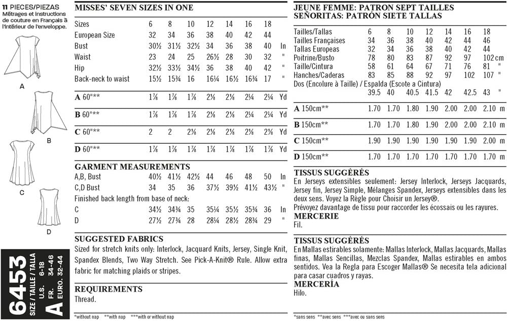 Unleash your creativity with the New Look Misses’ Easy Knit Top Sewing Pattern (Pattern 6453). This versatile pattern is perfect for sewers looking to create a wardrobe of stylish, modern tops with comfort in mind. Designed for easy-to-sew knit fabrics, this pattern allows you to fashion sleeveless tops or trendy tops with cap sleeves, making it ideal for layering or warm-weather wear.