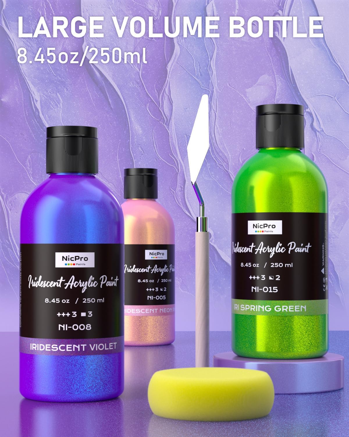 We’ve included the tools you need to start creating immediately. This comprehensive kit comes with a professional painting knife for texture work and an art sponge for stippling and blending. The paints are packaged in leak-proof, flip-top caps that make storage easy and prevent messy spills.