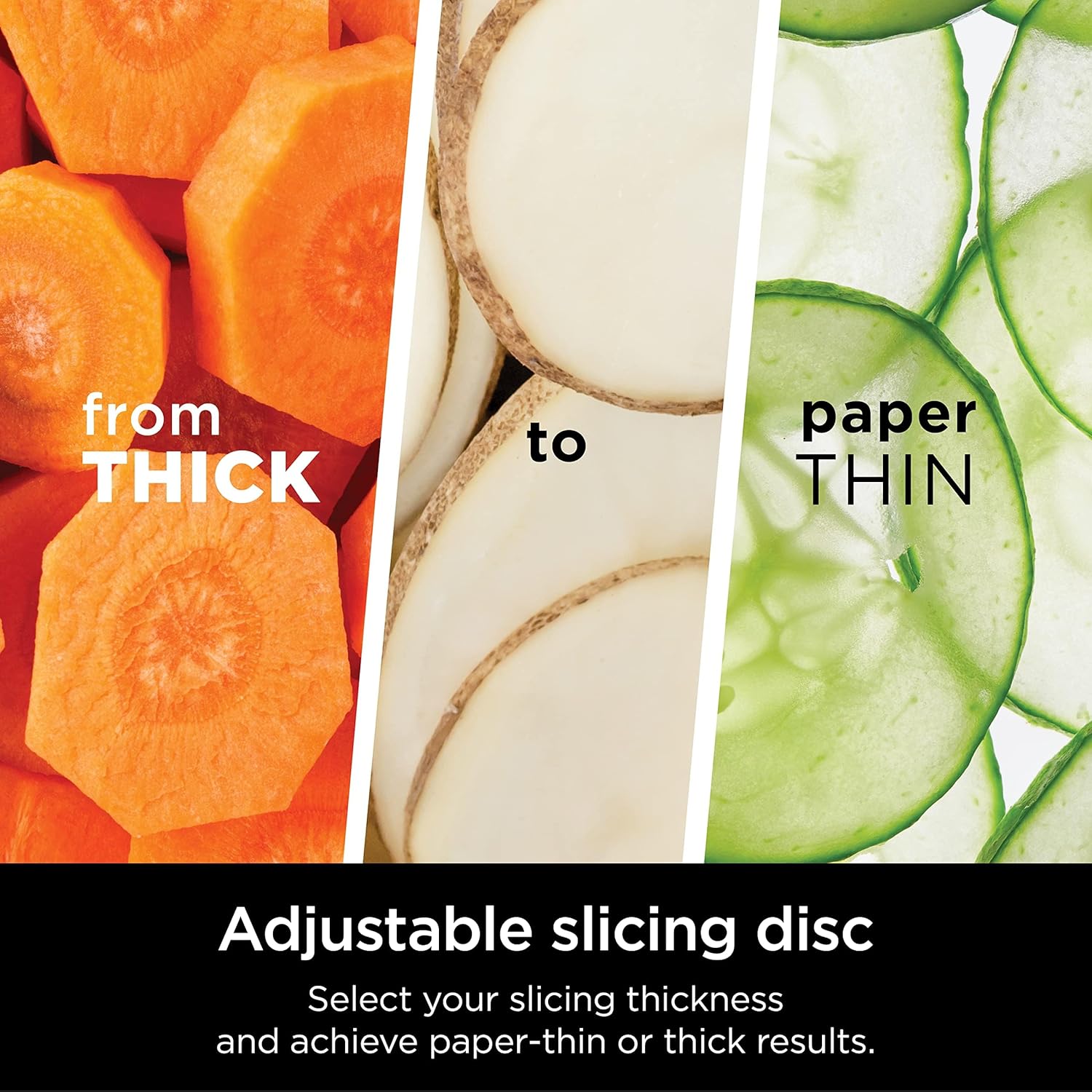 • Variable Slicing: Adjustable thickness settings let you create everything from thick slices to paper-thin cuts.
