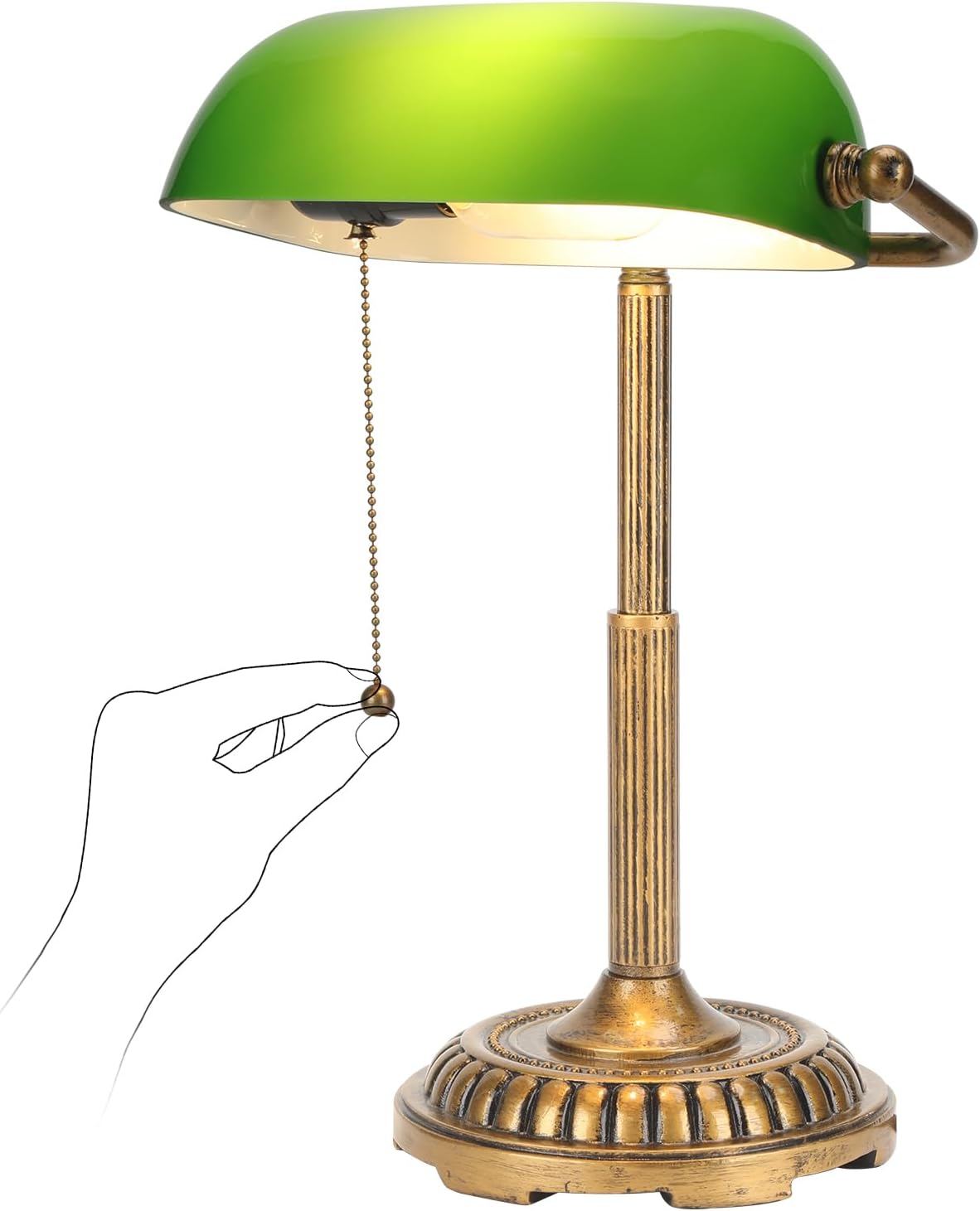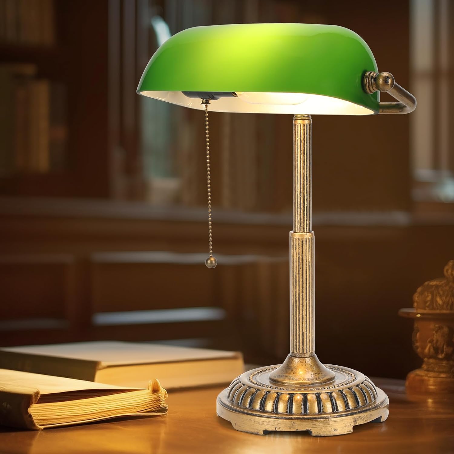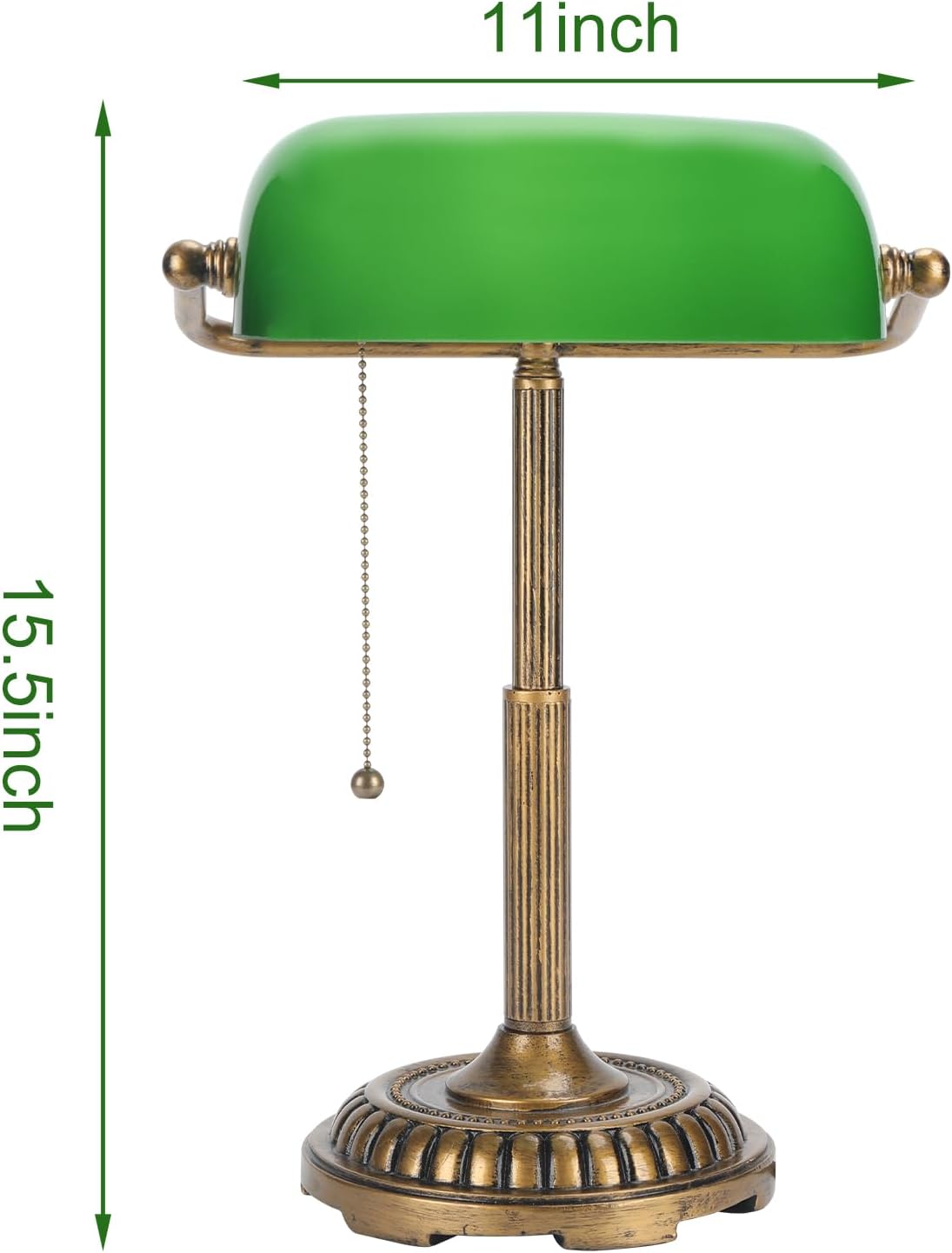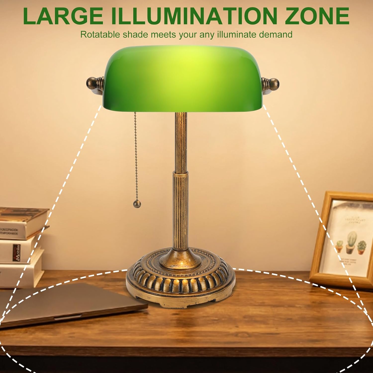 - Iconic Emerald Glass Shade: The classic green glass shade creates a warm, focused glow that reduces eye strain during late-night reading sessions, adding a professional and cozy ambiance to your workspace.