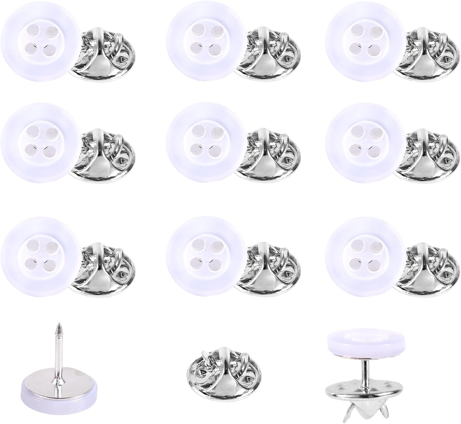 No-Sew Shirt Buttons – 10 Sets of 11mm Detachable 4-Hole Resin Pins for Cardigans, Sweaters, and DIY Crafts (White)