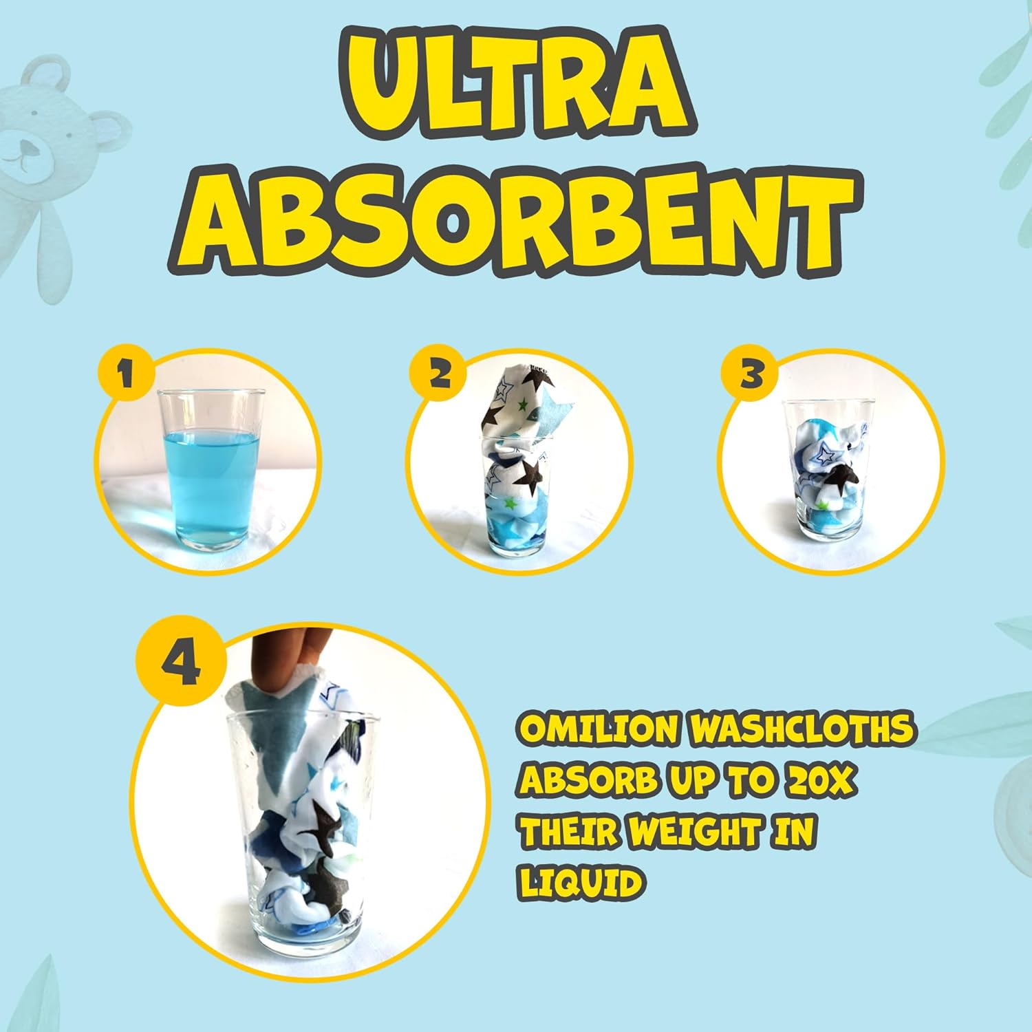 • 30-pack of premium 100% cotton flannel baby washcloths