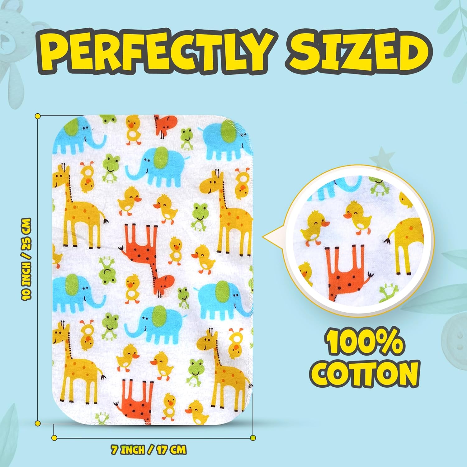 Transform bath time into a delightful experience for your little one with the Omilion 30-Pack Baby Washcloths. Crafted from premium 100% cotton flannel, these washcloths feature adorable designs including giraffes, elephants, cars, dogs, construction vehicles, and stars that make cleanup fun for both boys and girls. Each washcloth measures 7 by 10 inches, providing the perfect size for thorough yet gentle cleaning on delicate baby skin. The soft, plush texture feels heavenly against your baby’s tender skin while effectively removing dirt and grime. These reusable washcloths are machine washable, making them an eco-friendly and economical alternative to disposable wipes. Simply toss them in the wash and reuse again and again. Whether it’s a full bath session or a quick clean-up between baths, this 30-pack ensures you always have a fresh, clean cloth at hand. The vibrant, gender-neutral designs make these washcloths suitable for the whole family—parents love them too! Perfect for home use, travel, or as a thoughtful baby shower gift.