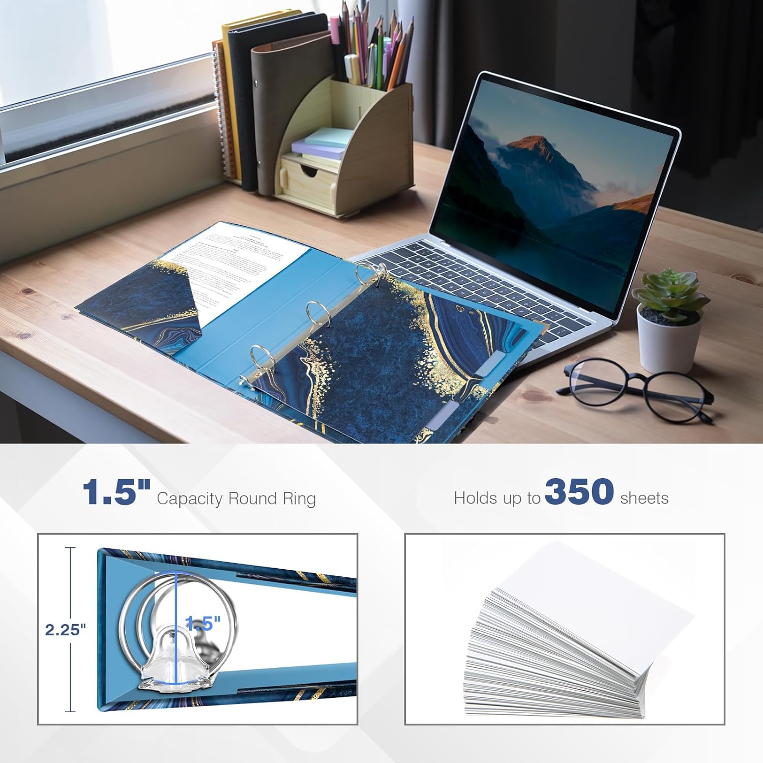 - High Capacity Organization: Equipped with 1.5-inch round rings that hold up to 350 sheets of letter-size paper, ideal for large projects and presentations.