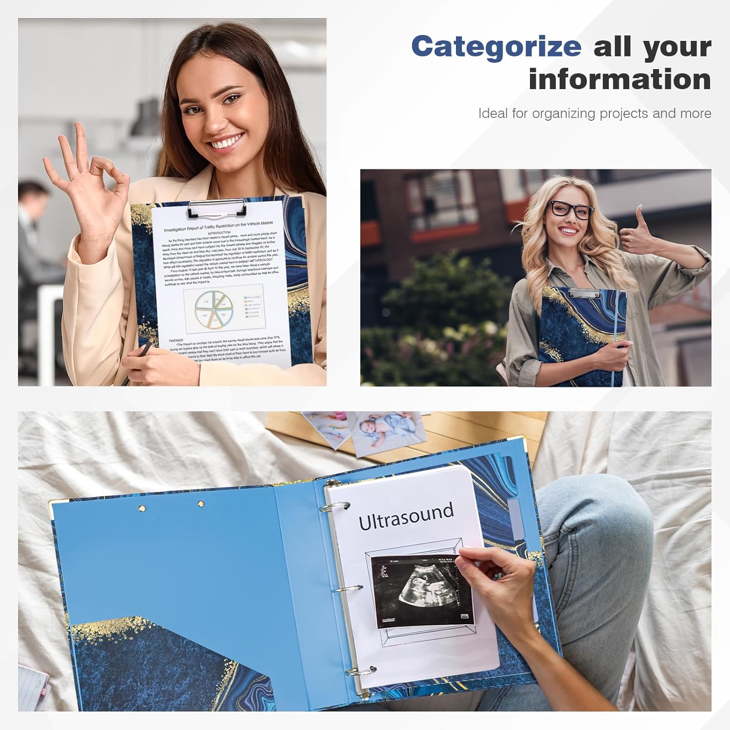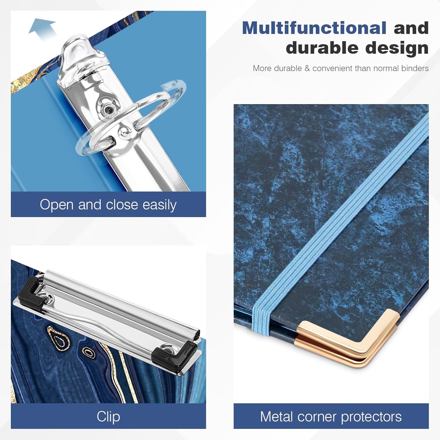 Constructed from high-quality, rigid cardboard with a premium gloss lamination, this binder is built to last while reducing plastic usage. Metal corner protectors reinforce durability against wear and tear, ensuring your documents stay safe. The included elastic closure keeps the binder firmly shut, preventing pages from slipping out while doubling as a handy bookmark. Whether you are a student, professional, or artist, the Ospelelf Blue Marble Binder is your ultimate solution for organized, on-the-go productivity.