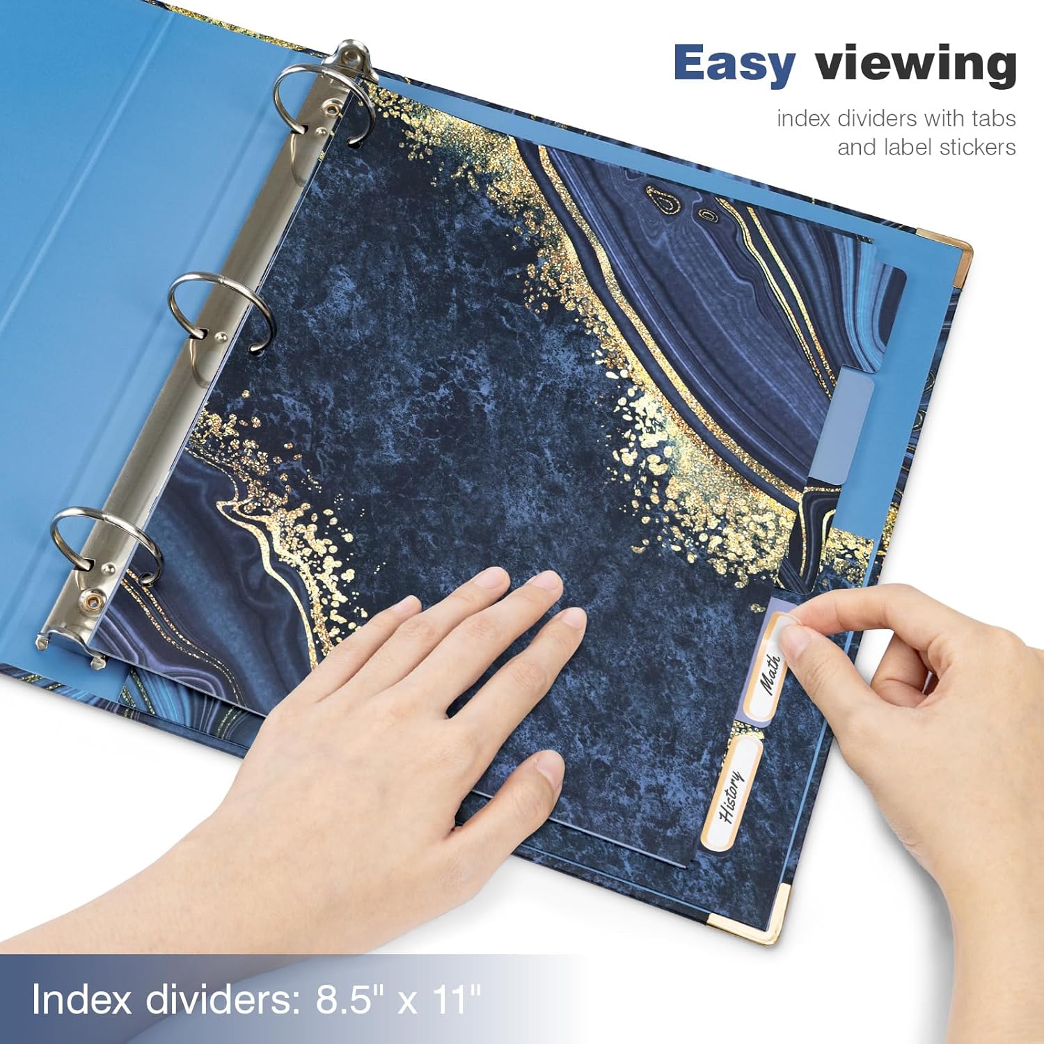 Ospelelf Blue Marble 1.5 Inch 3-Ring Binder – Letter Size Organizer with Low Profile Clipboard, 5 Tab Dividers, and Elastic Closure – Durable Eco-Friendly School & Office Folder