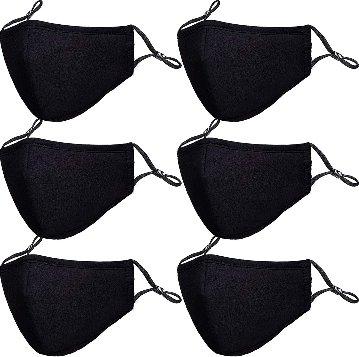 PAGE ONE Premium Cotton Face Masks – 6 Pack Adjustable, Washable & Breathable Reusable Cloth Masks for Men & Women (Black)