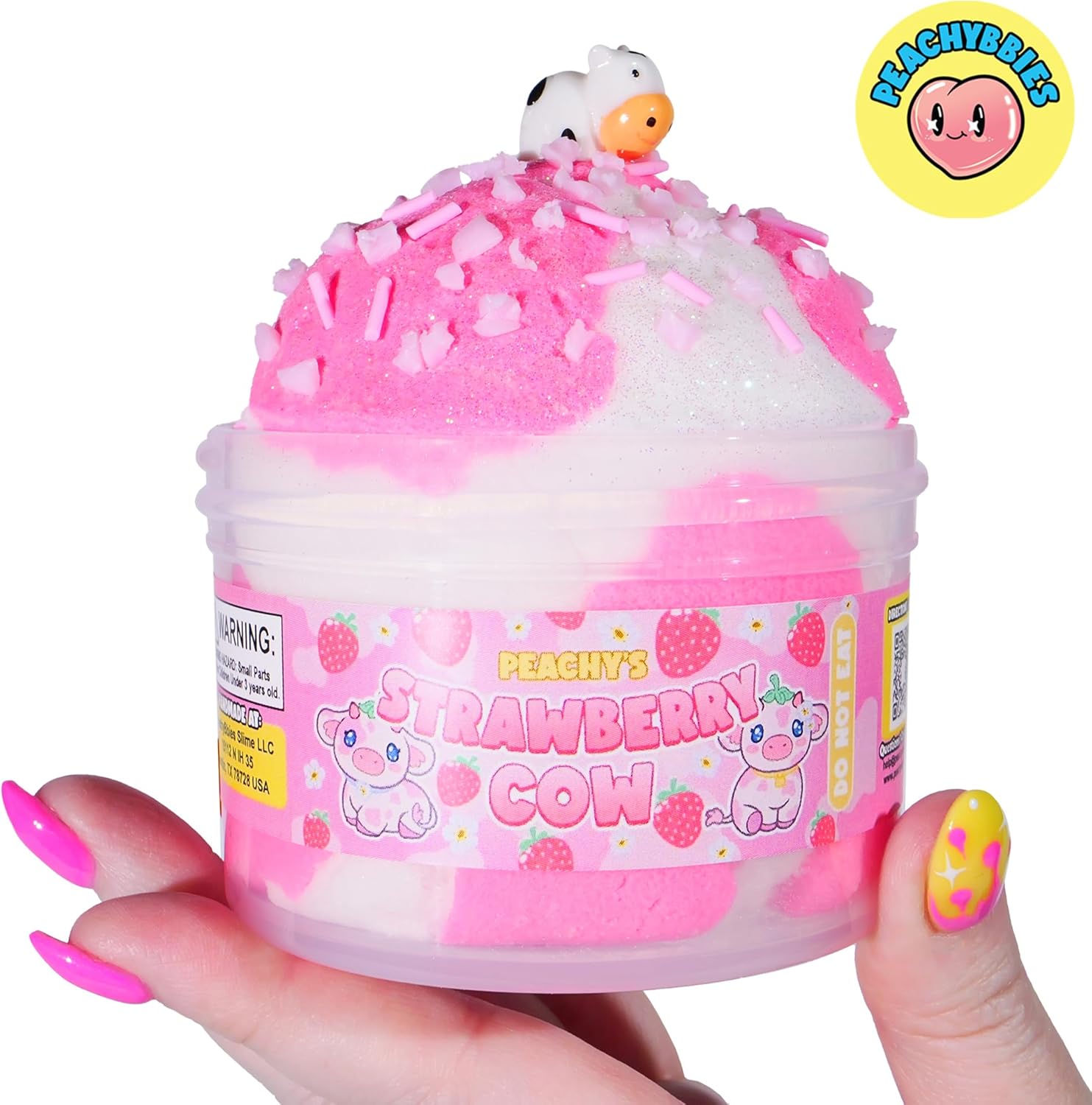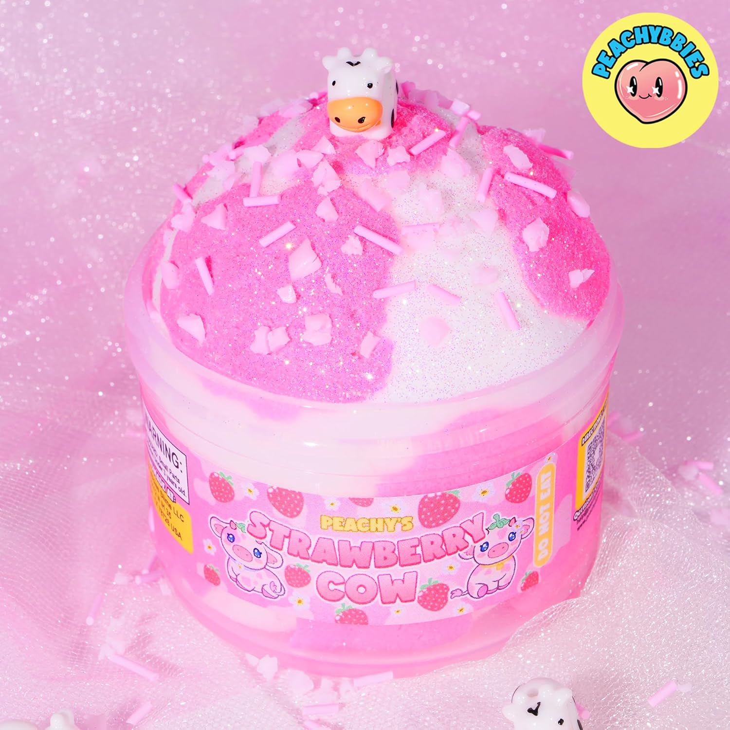 PREMIUM SCENT & SAFETY: Every jar is lovingly topped with an adorable cow charm and a mix of strawberry sprinkles for added visual and textural delight. Lightly scented like sweet strawberry milk, it engages the sense of smell without being overpowering. Safety is our top priority: Peachybbies slimes are third-party tested, non-toxic, and recommended for ages 5 and up. Join the millions worldwide who trust Peachybbies for high-quality, magical slime experiences.