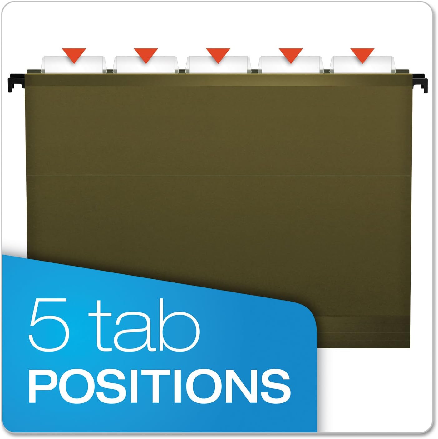Pendaflex SureHook Reinforced Hanging Folders – Letter Size, Standard Green, 20-Pack with Built-in Tension Springs