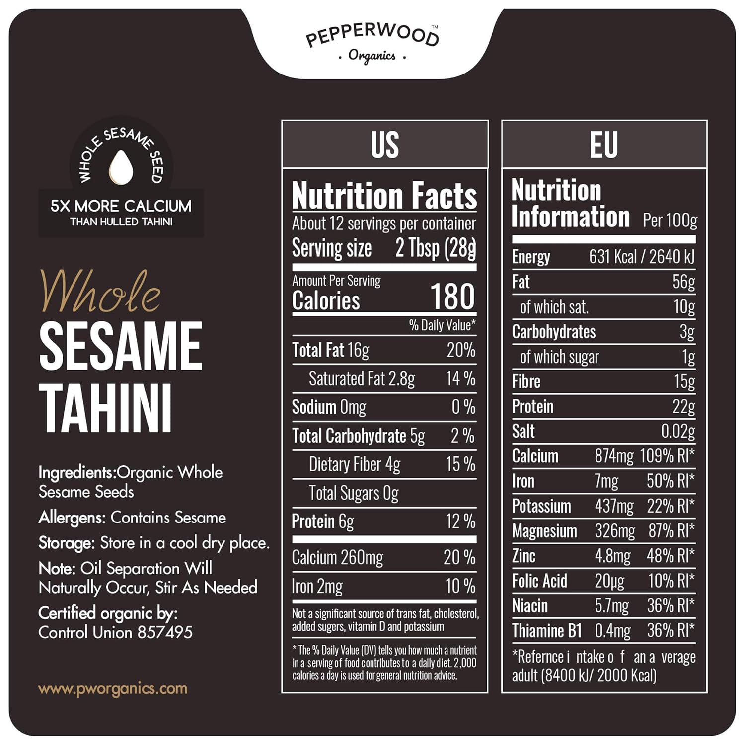 Elevate your culinary creations with Pepperwood Organics 100% Stone Ground Unhulled Sesame Tahini. Unlike standard varieties, our tahini is crafted from unhulled sesame seeds, preserving the seed’s natural kernel and nutritional value for a robust, earthy flavor and creamy texture.