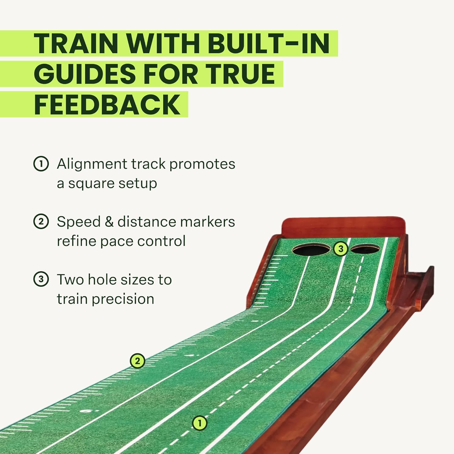 Featuring an integrated automatic ball return system, this mat maximizes practice efficiency by delivering the ball right back to your feet after every putt—eliminating interruptions and keeping you in the flow. The durable, non-slip backing ensures the mat lays flat on any surface, indoor or outdoor, providing a stable platform for consistent practice sessions.