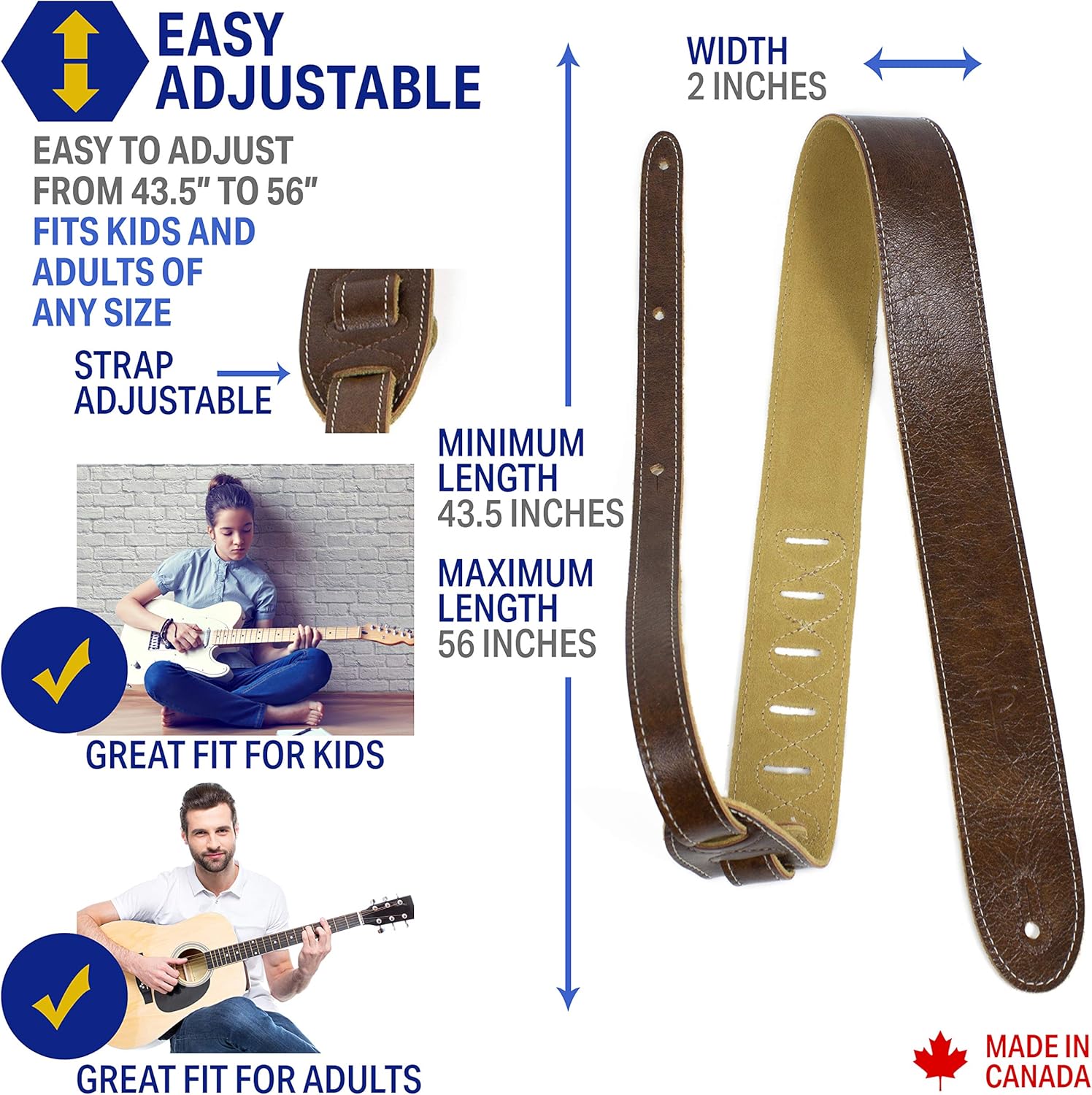 Designed to accommodate a wide variety of playing styles and body types, the strap adjusts seamlessly from 41 inches to 56 inches. This versatility ensures an optimal fit for most electric, bass, and acoustic guitars. Whether you prefer your guitar slung low for a rock aesthetic or positioned higher for precise fingerpicking, this strap delivers the flexibility you need without compromising on style or security.