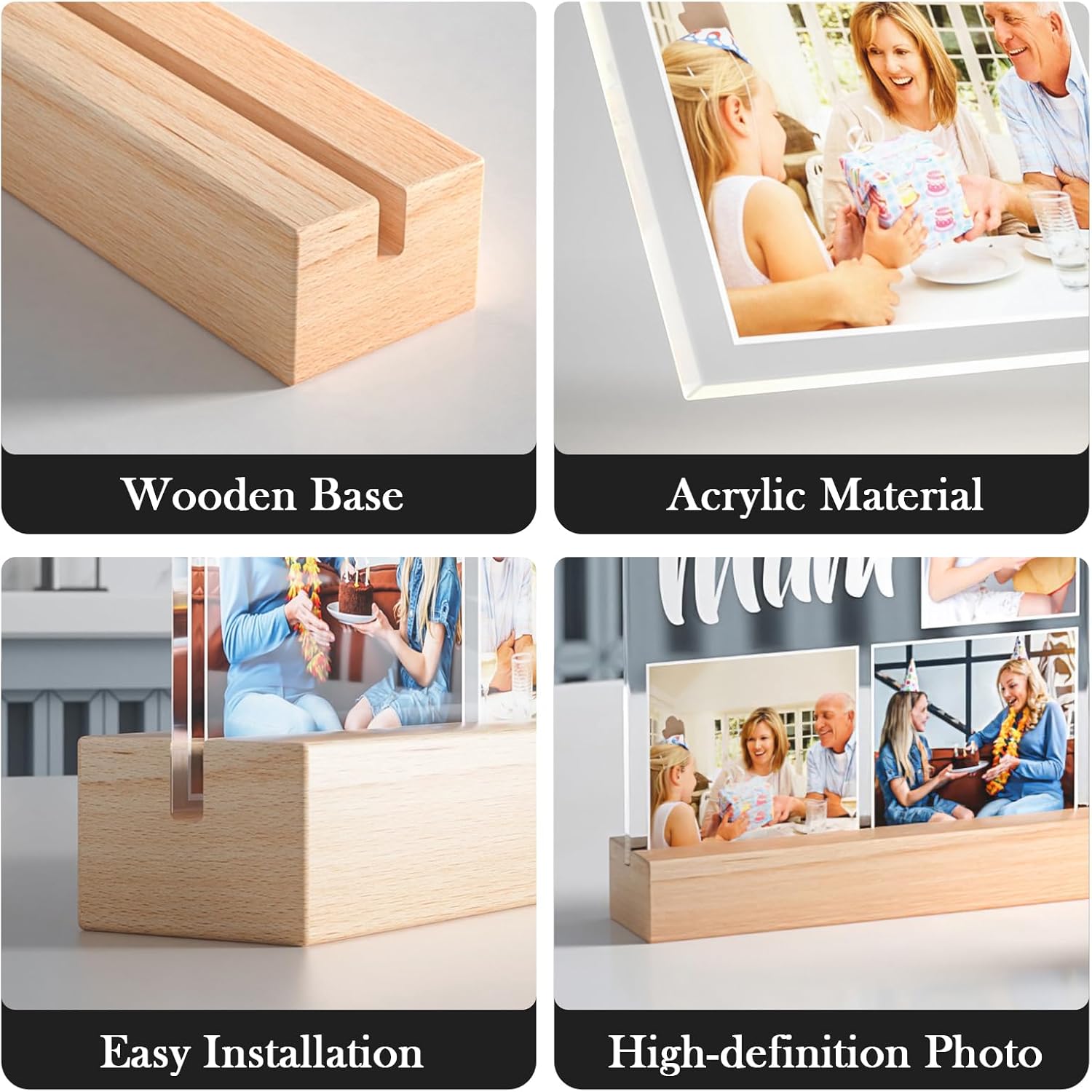 Illuminated Ambiance: The built-in LED night light function turns your photo into a soothing lamp, providing a gentle glow that enhances the mood of bedrooms, nurseries, or living spaces.