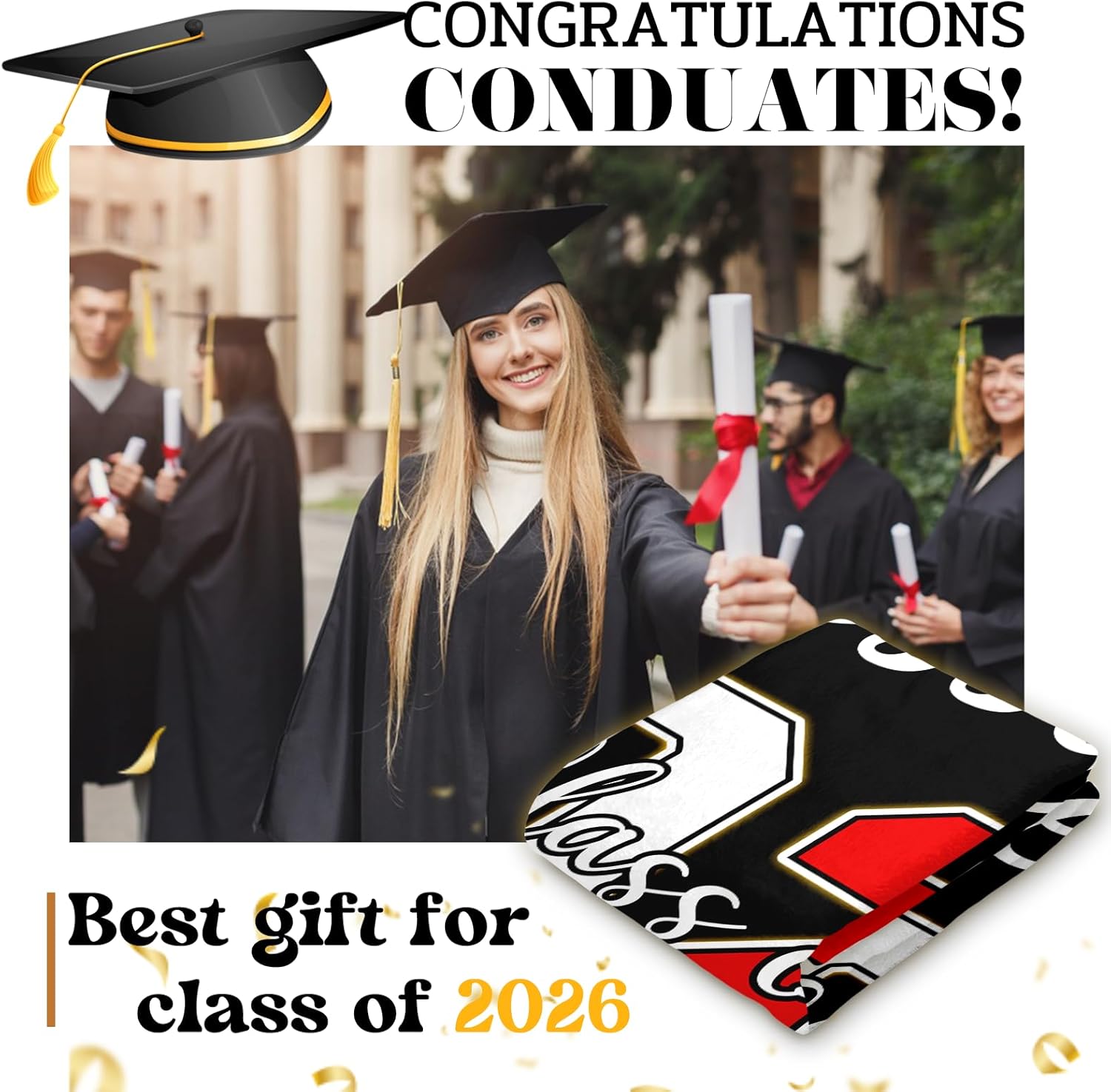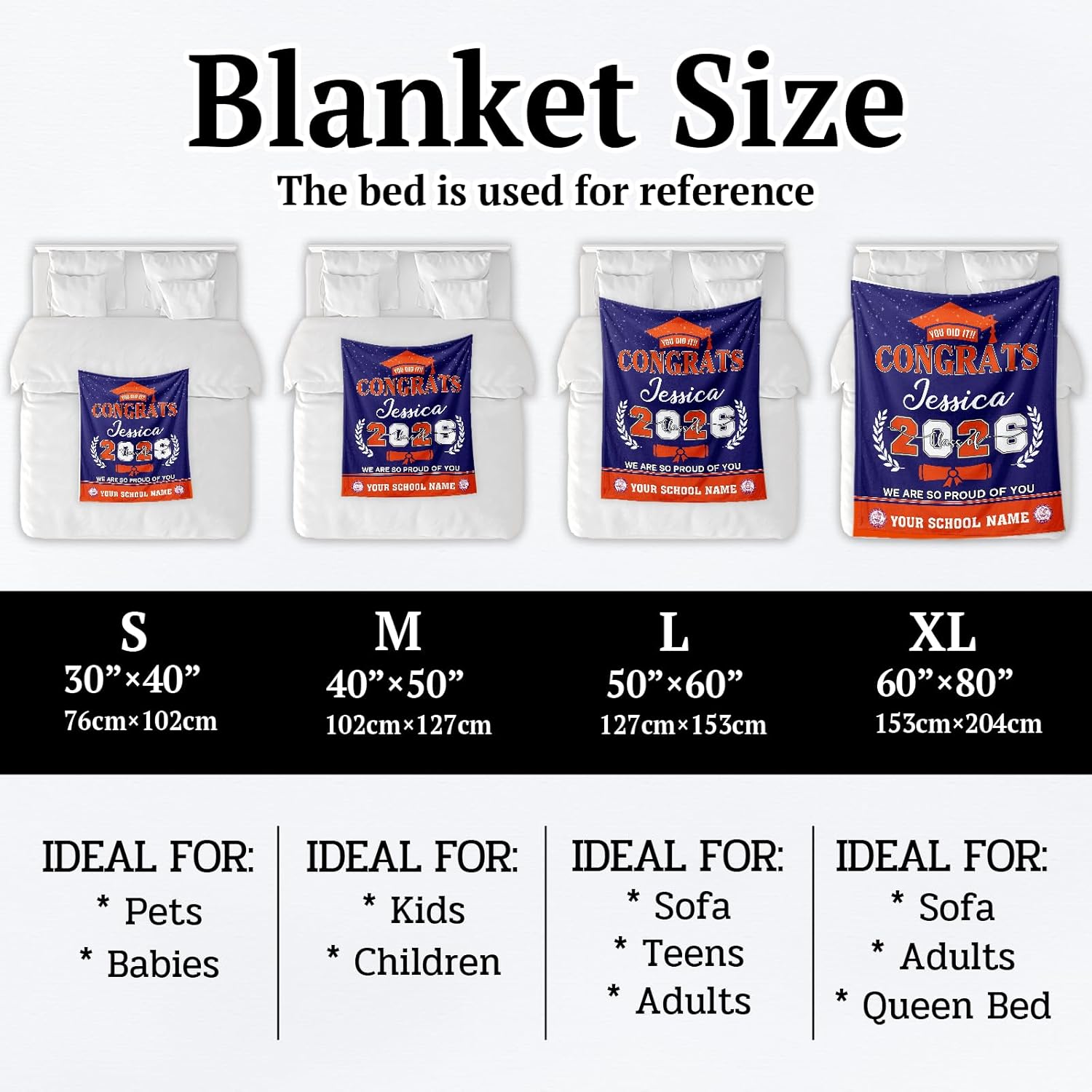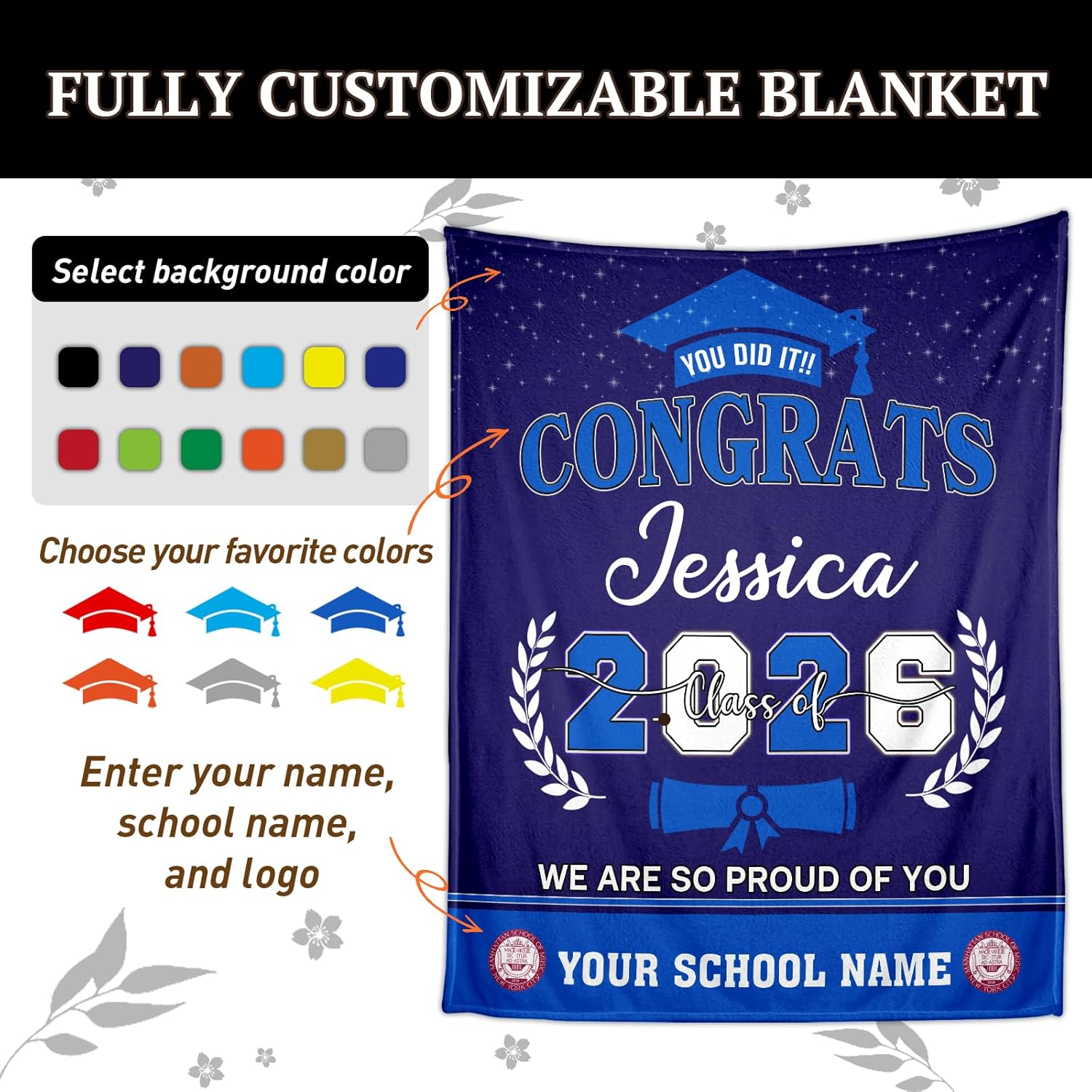 UNIQUELY YOURS: Make their graduation day unforgettable. Click “Customize Now” to choose from over 800 color combinations and personalize the blanket with their Name, School, and Class of 2026 details. It’s the perfect canvas to showcase school pride and personal achievement.