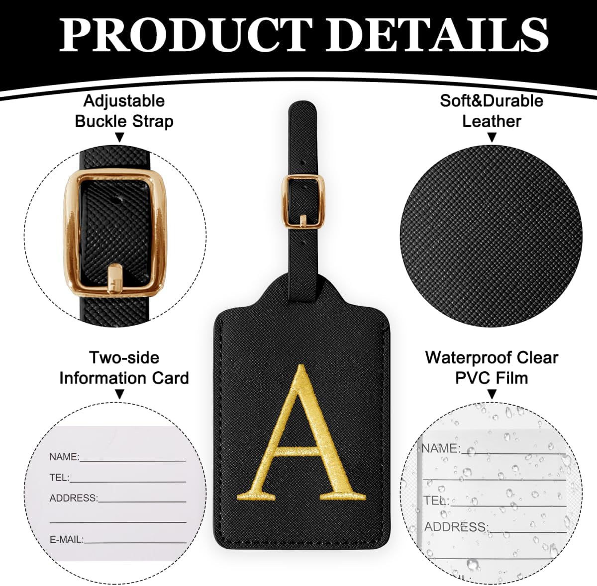 Security is paramount; that’s why these tags feature a smart privacy flap that conceals your contact details from prying eyes while keeping them easily accessible to airline staff if your luggage is misplaced. The reinforced metal buckle makes attachment and removal a breeze, fitting securely onto suitcases, backpacks, and carry-ons. Measuring 2.75″ x 4.40″ with an 8.42″ strap, the interior slot perfectly accommodates standard business cards or debit cards for your information. Whether for a honeymoon, bridal party favor, family vacation, or business trip, these monogrammed tags make the perfect gift for men, women, and teens who love to travel.