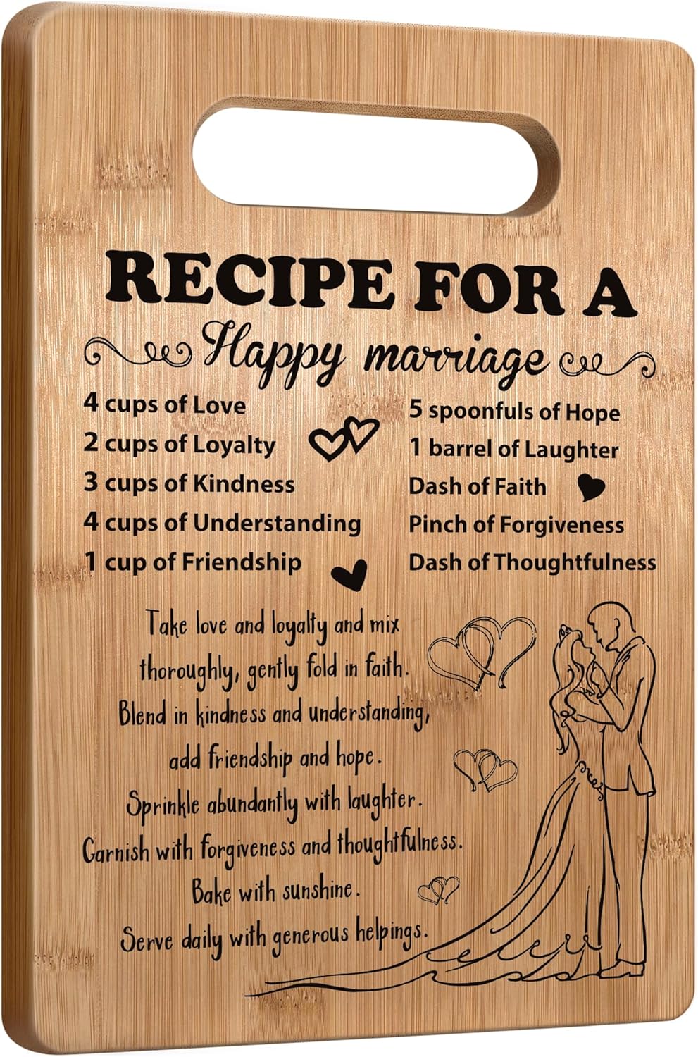 Looking for a unique, sentimental gift for a special couple? This “Recipe for a Happy Marriage” bamboo cutting board is the perfect blend of rustic charm and practical functionality. Whether it’s for an engagement, a bridal shower, a wedding, or a milestone anniversary, this beautifully crafted board serves as a lasting reminder of love and commitment.