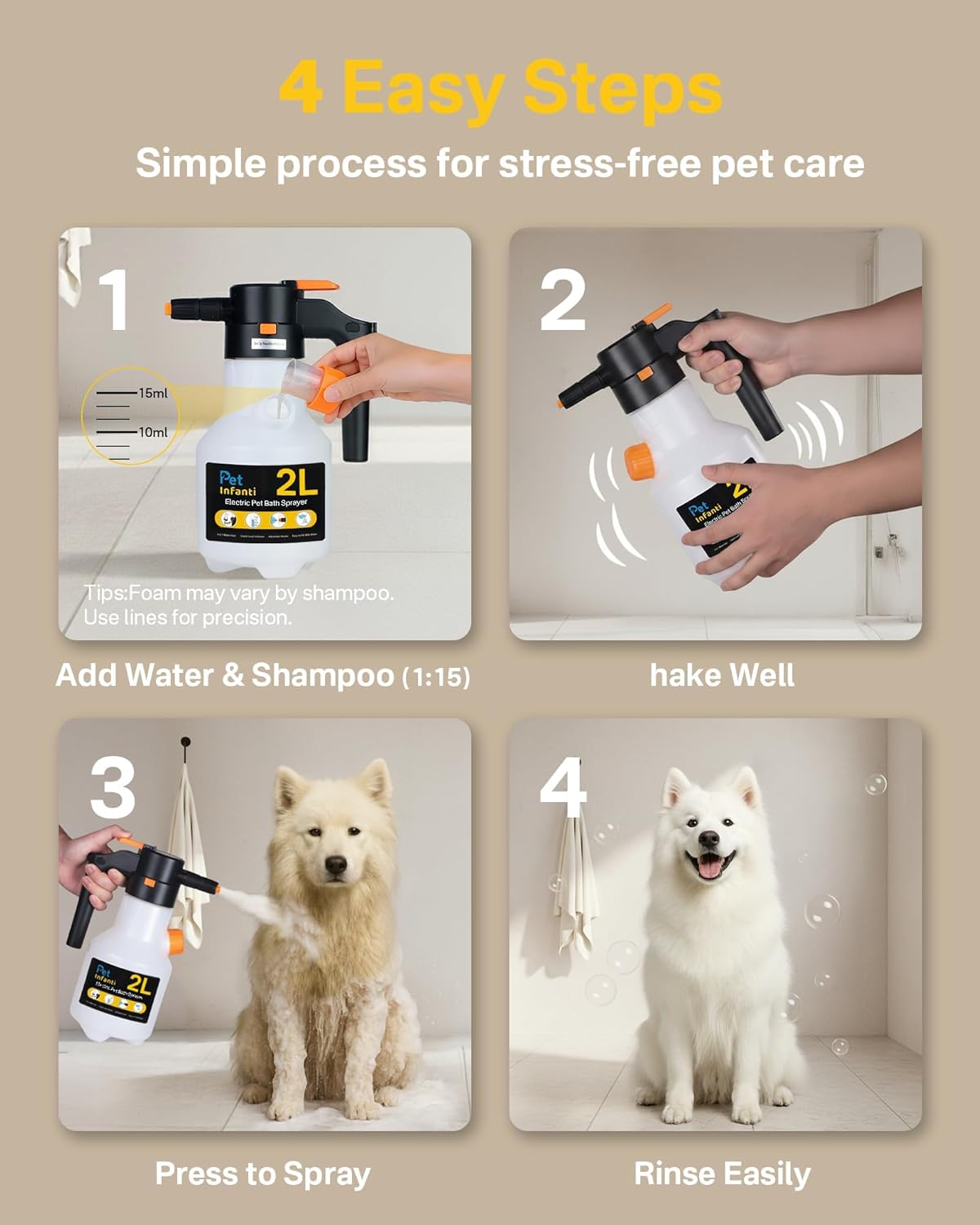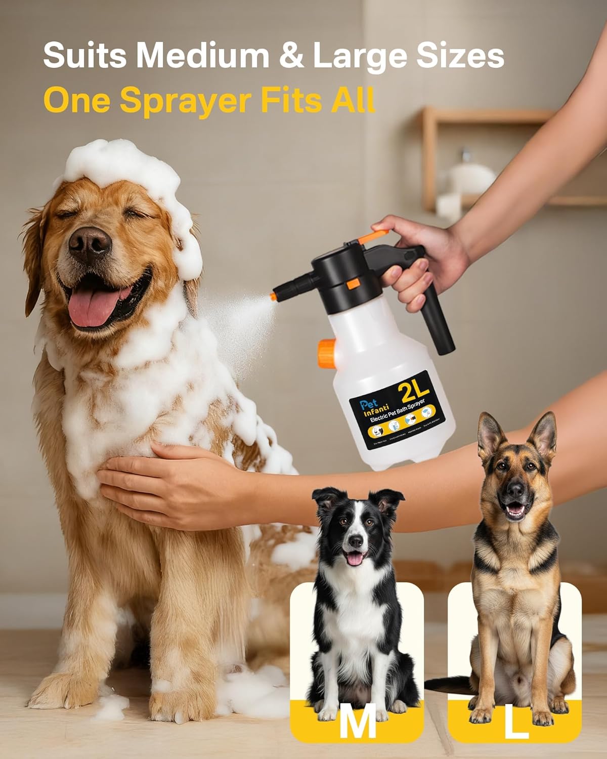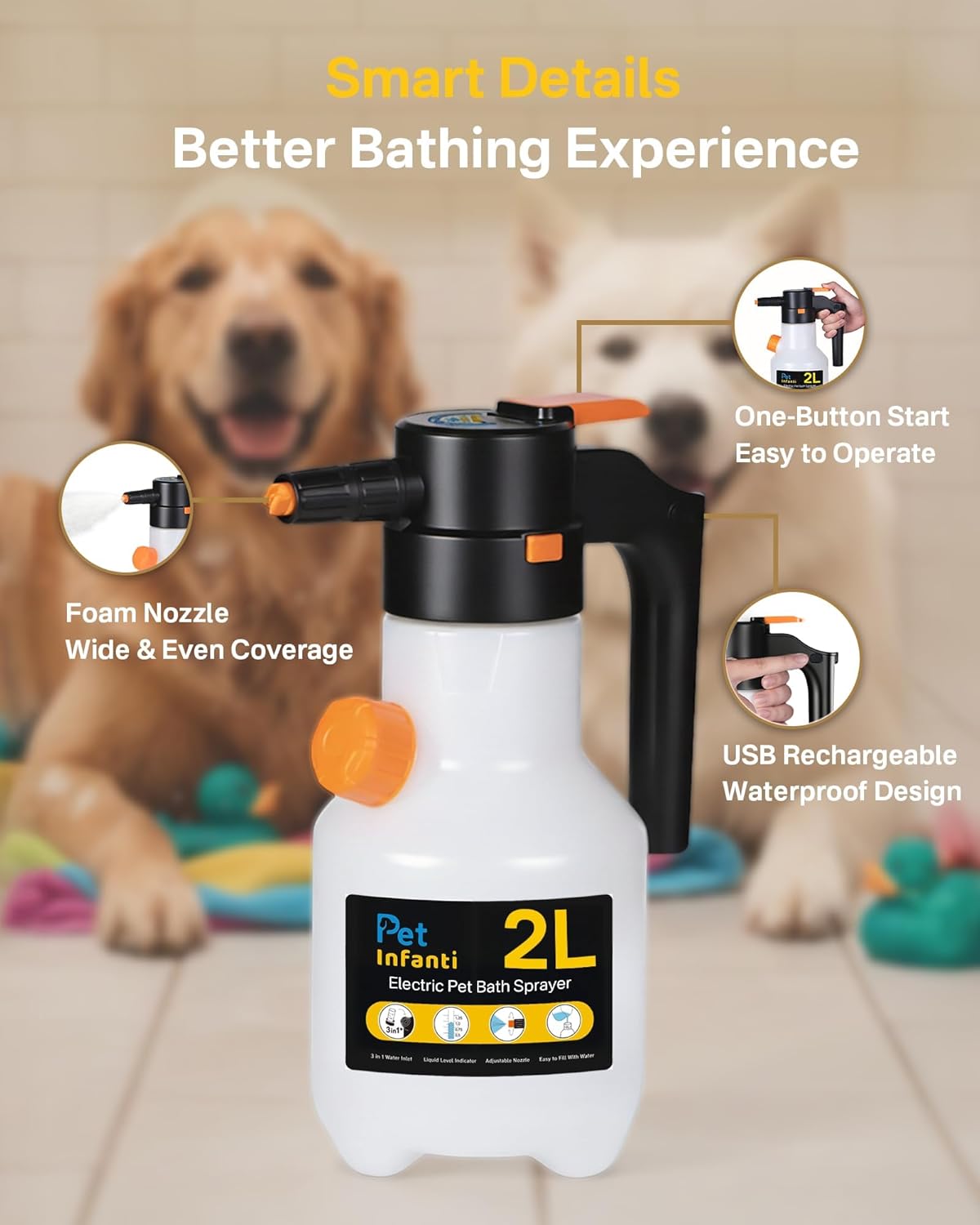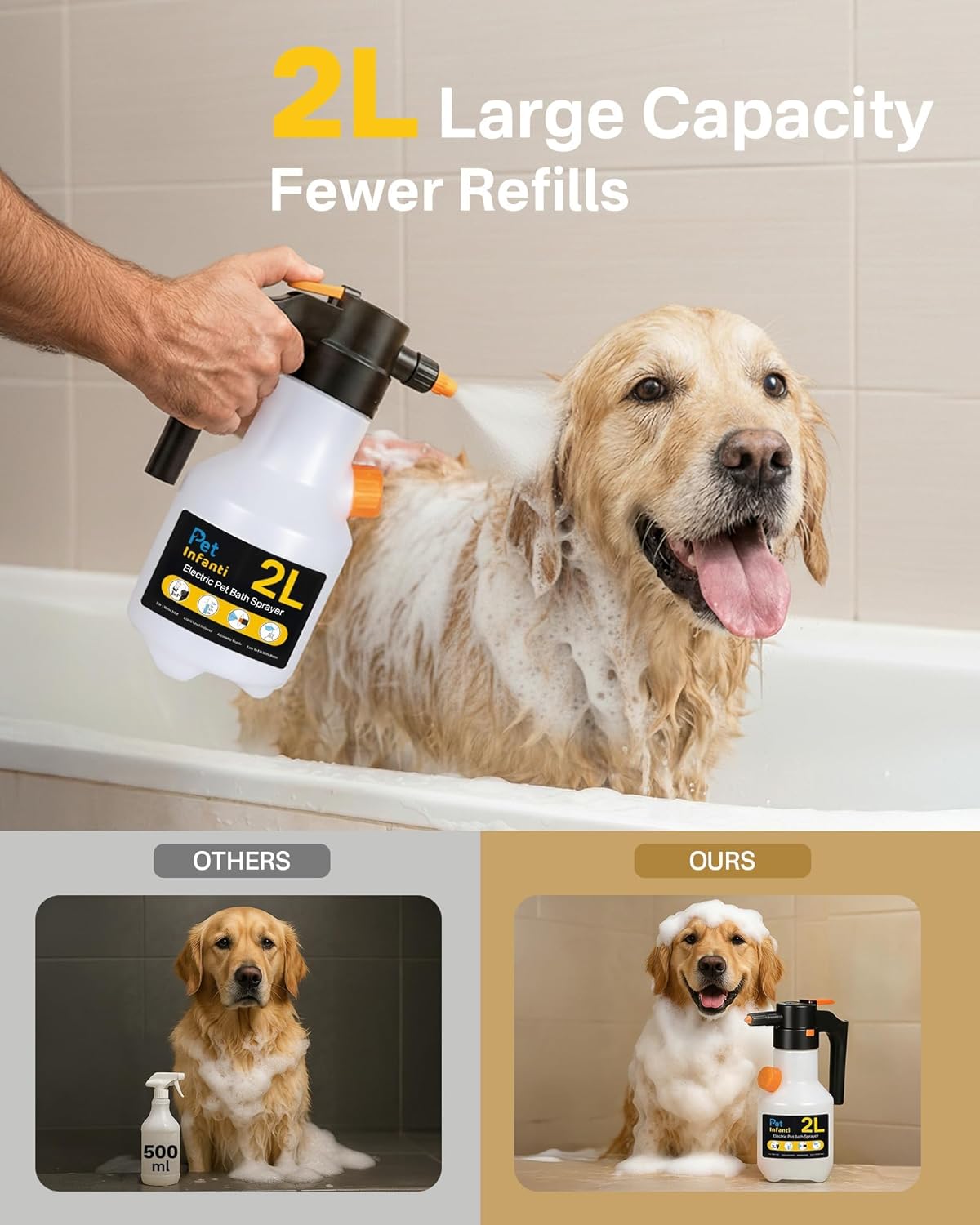 Transform bath time from a struggle into a spa experience with the PetMate Pro Electric Foam Sprayer. Designed for pet owners who demand efficiency and convenience, this 2-liter capacity sprayer eliminates the need for manual pumping, allowing you to wash your dog or cat with just one hand.