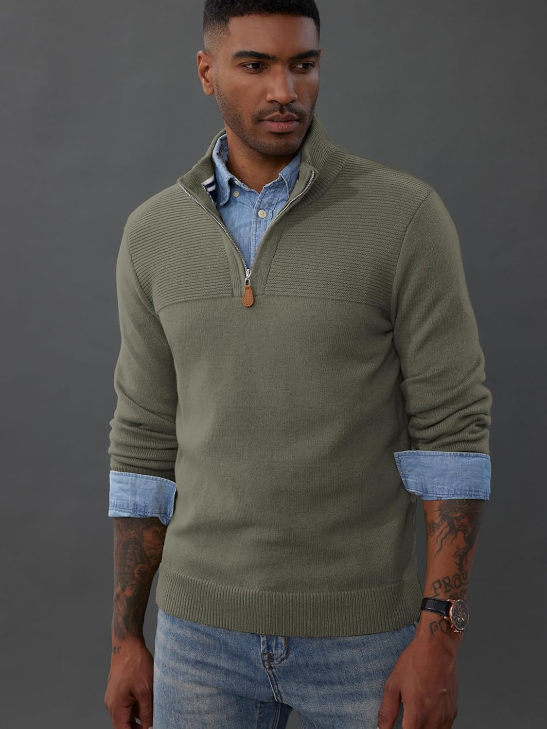 PJ PAUL JONES Men’s Slim Fit Quarter-Zip Mock Neck Sweater – Casual Pullover Top