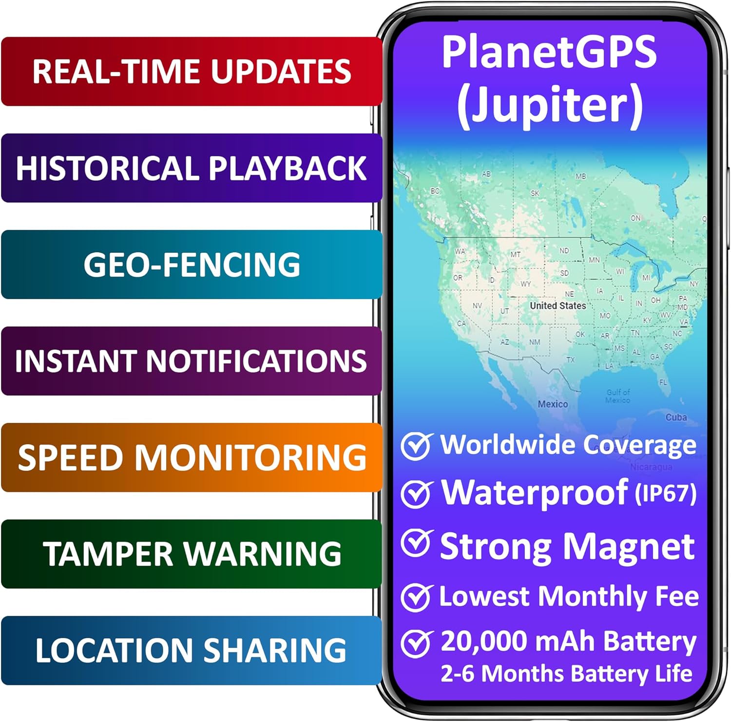 Experience the freedom of the PlanetGPS Jupiter tracker. Our flexible subscription plans are designed to save you money without locking you into contracts. Choose from our 3-month, 6-month, 1-year, or 2-year plans—starting as low as $5.00/month when billed biennially. No activation fees, no surprises.