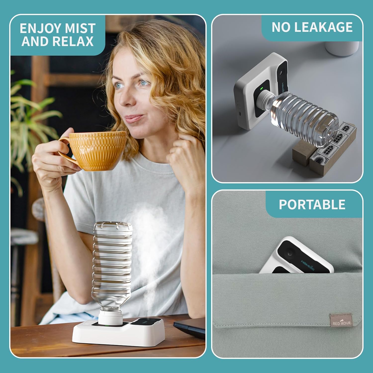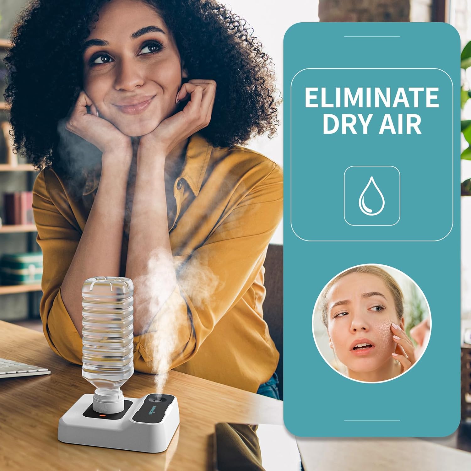 - COMPACT & TRAVEL-FRIENDLY: At just 7.2 oz and 5.91 inches, this mini humidifier fits in your bag or hand. Connects to most water bottles—no bulky tank needed.