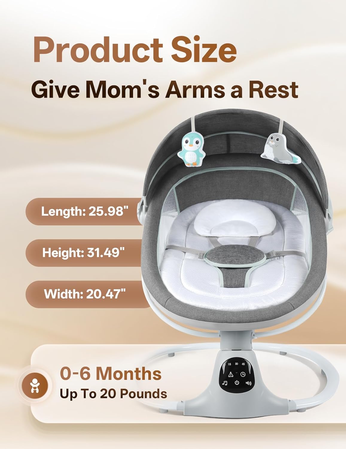 - Customizable Soothing: Equipped with 5 distinct swing speeds and 3 timer settings, allowing you to perfectly match the motion to your baby’s preference.