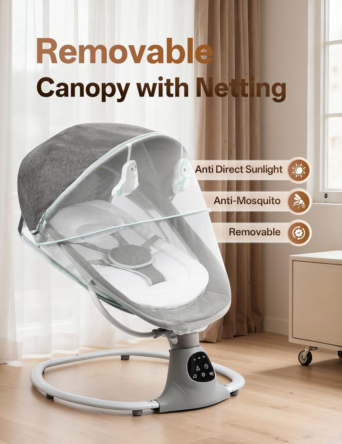 Ideal Gift for New Parents: This sleek grey swing is a must-have baby registry item, offering the perfect blend of style and functionality for any nursery.