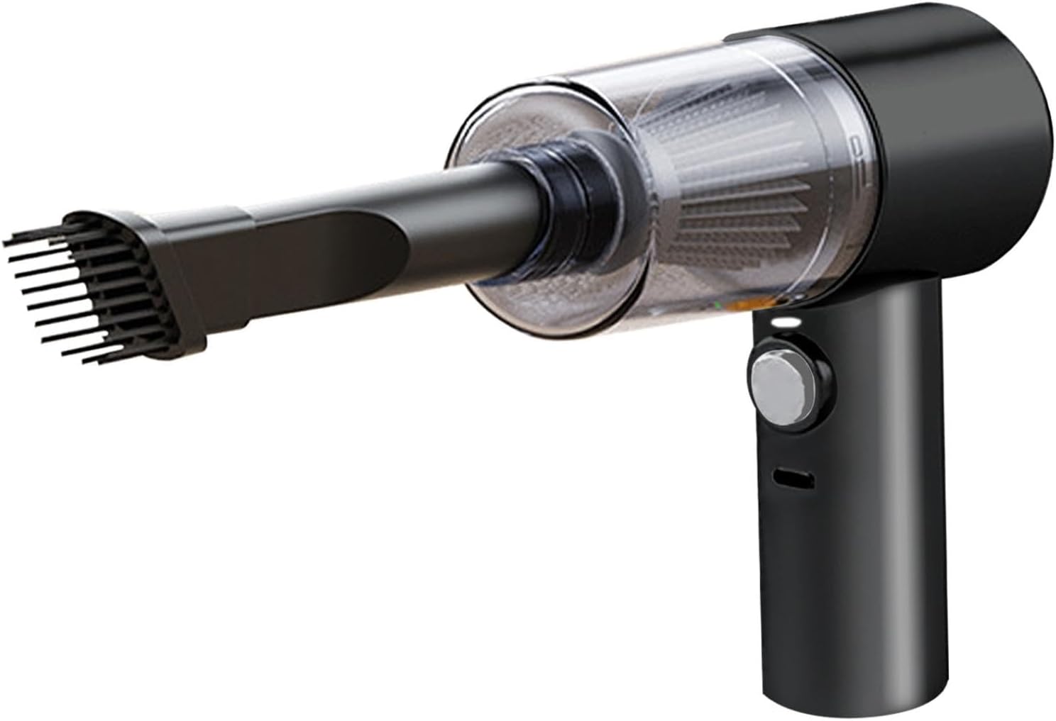 Keep your vehicle spotless with this high-performance portable car vacuum cleaner featuring 4000Pa powerful suction that effortlessly picks up pet hair, dust, crumbs, and debris from every corner of your car. The compact cordless design with built-in LED lights illuminates dark areas like cup holders, air vents, and seat gaps for thorough cleaning. USB rechargeable battery provides up to 25 minutes of continuous runtime on a full 3-3.5 hour charge. Includes 2-in-1 crevice tool, brush nozzle, and extended hose for versatile cleaning on dashboards, keyboards, and home corners. Washable HEPA filter with transparent dust cup makes emptying and reusing a breeze. Lightweight at just 255g, this mini car companion fits perfectly in your glove box or center console. Perfect gift for car enthusiasts, pet owners, and anyone who values a clean ride. Specifications: 36000RPM motor speed, 150ml dust capacity, 3.7V rated voltage.