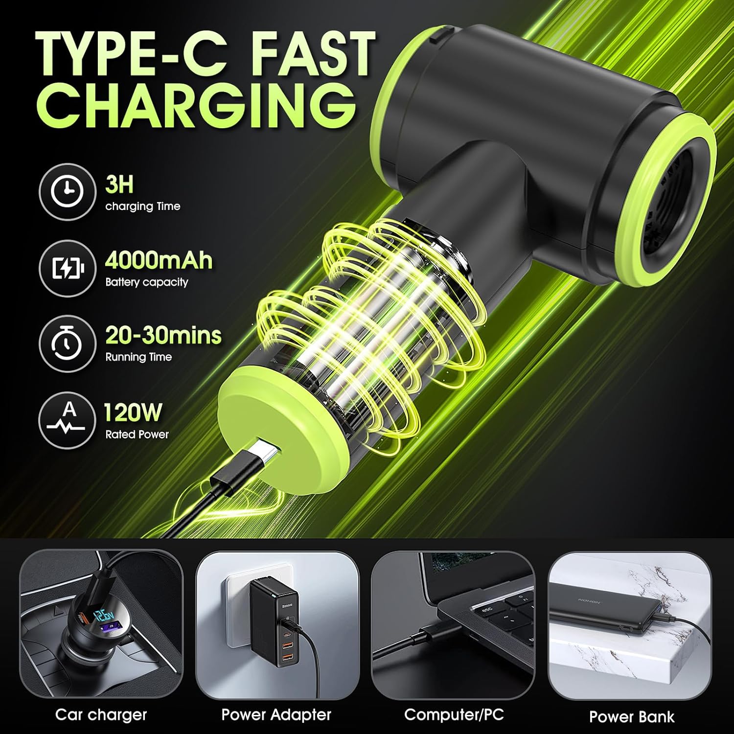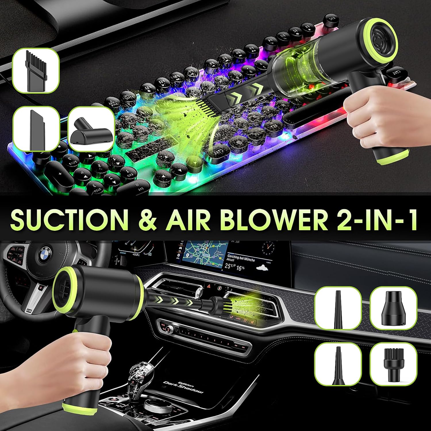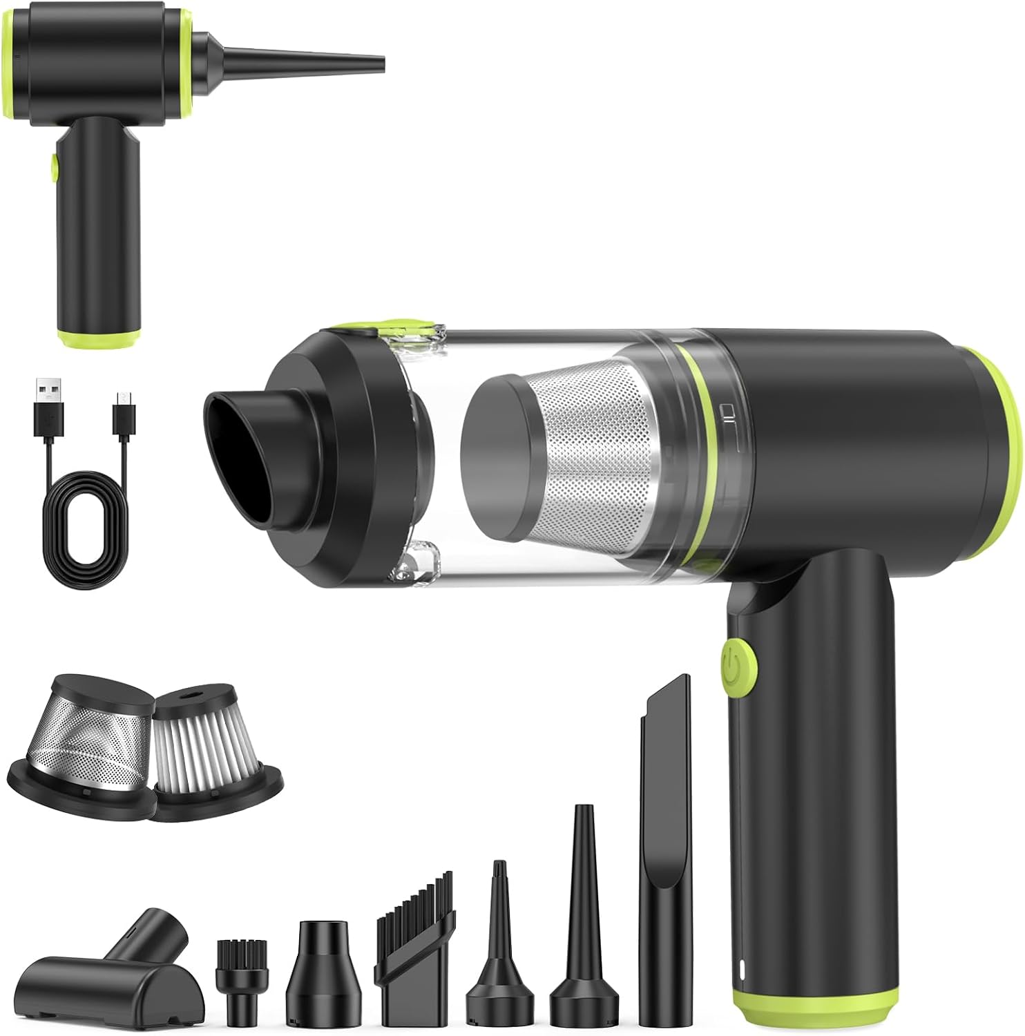 20000Pa powerful cordless handheld vacuum with brushless motor. 7-in-1 design works as vacuum and air duster. Washable HEPA filter, 20-30 min runtime, fast Type-C charging. Perfect for home, car, office and pet hair.