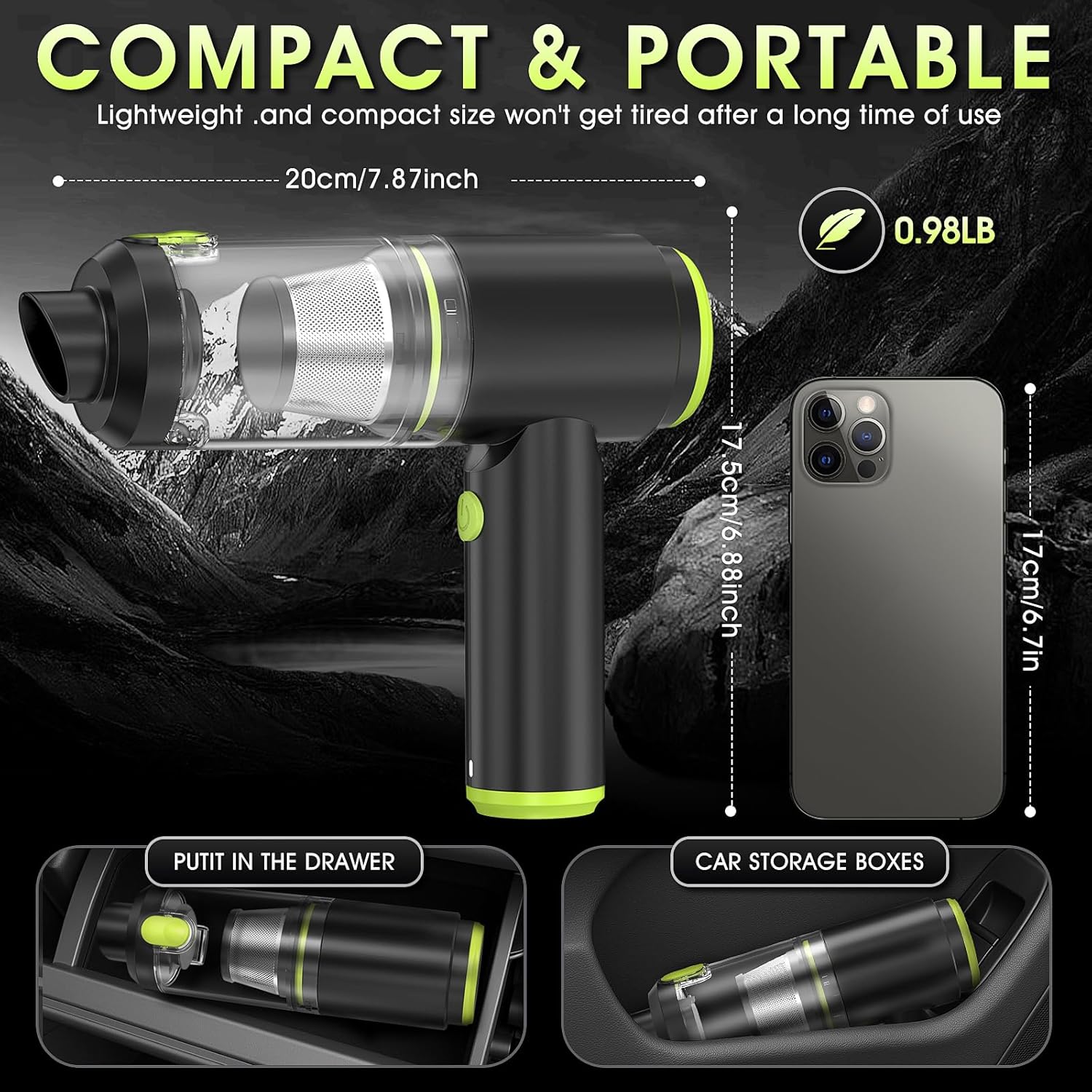 Powerful Cordless Handheld Vacuum – 20000PA Brushless Car Vacuum with Air Duster, Rechargeable Mini Vacuum for Home, Car, Office & Pet Hair